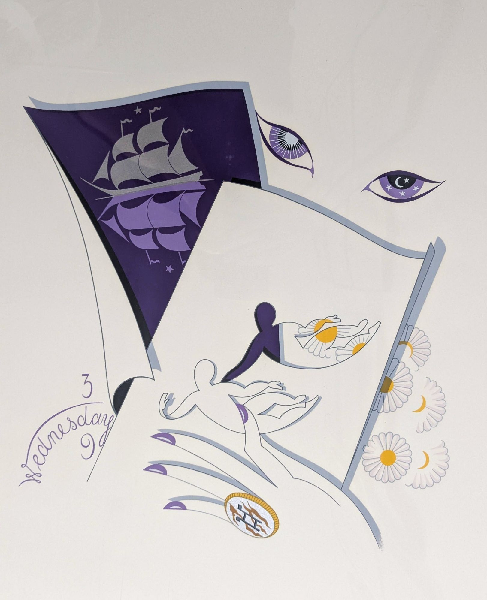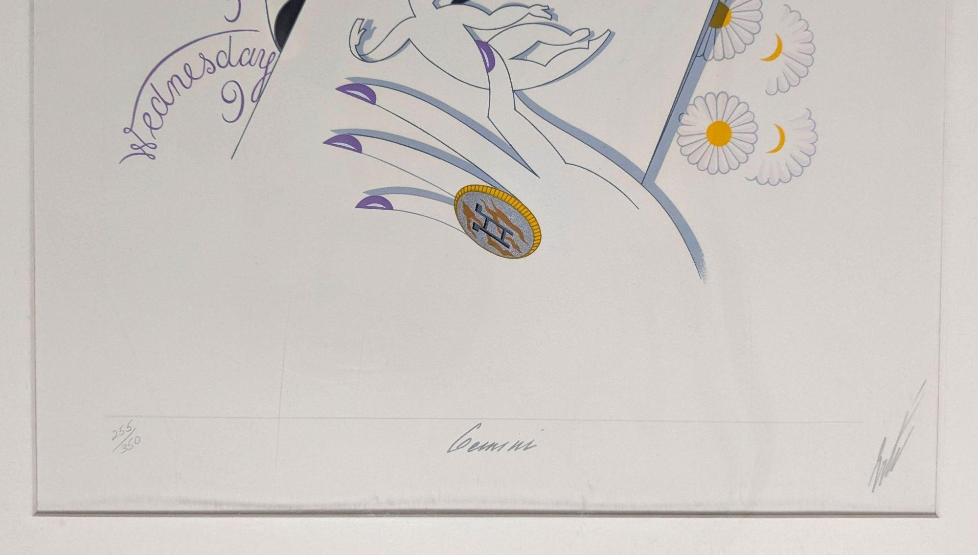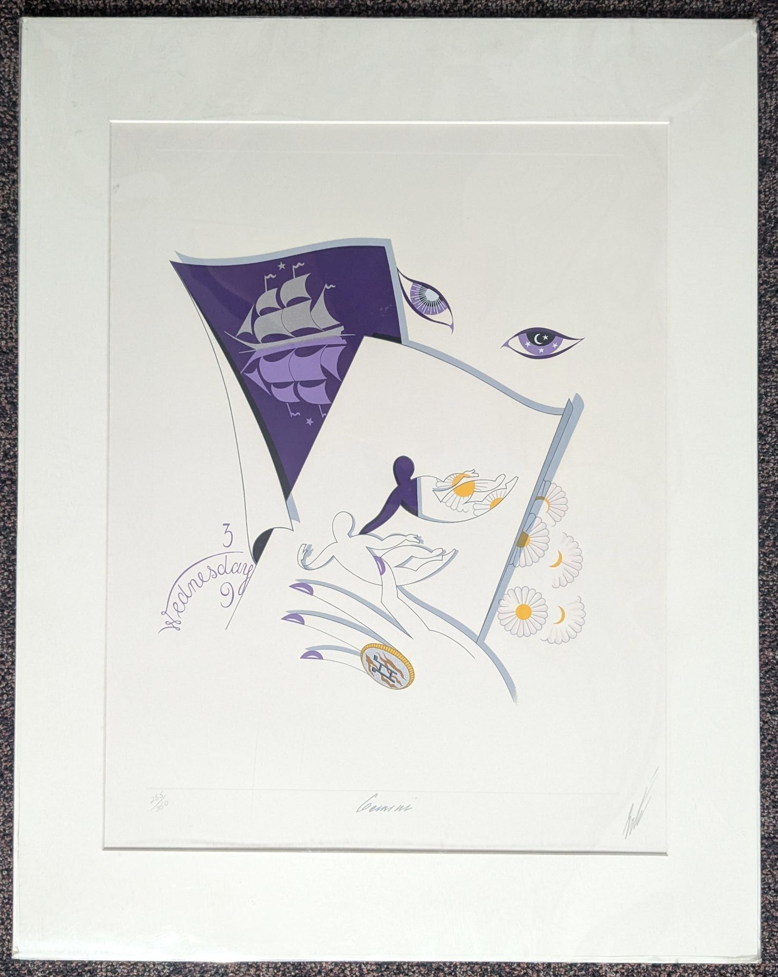 New York: Chromacomp (Embossed stamp in bottom margin), 1982. Limited Edition. Print. Very Good +. SIGNED. Serigraph on paper [16 1/2 x 20 1/2"; 22 x 28" in mat] from the limited series, featuring a crisp, colorful design. The scene features the sign's lucky numbers and ruling day of the week. A highly symbolic Erté image. Hand signed by Erté in pencil. Numbered in pencil. Edition limited to 350. This is number 255.