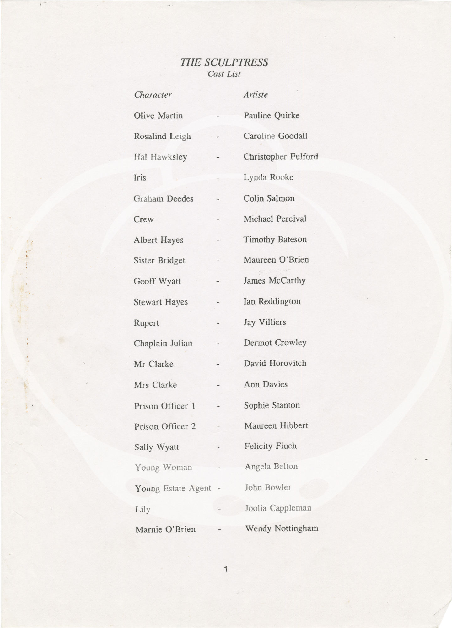 White titled self wrappers, noted as SHOOTING SCRIPT on the front wrapper, dated 25th AUGUST 1995, with credits for screenwriter Reg Gadney and novelist Minette Walters. 58 leaves, with last page of text numbered 51. Xerographic duplication, rectos only, with pink and blue revision pages throughout, dated variously between 8.9.95 and 28.9.95. Pages Very Good plus, wrapper Very Good plus, with rusting and creasing to the binding, with silver prong binding.