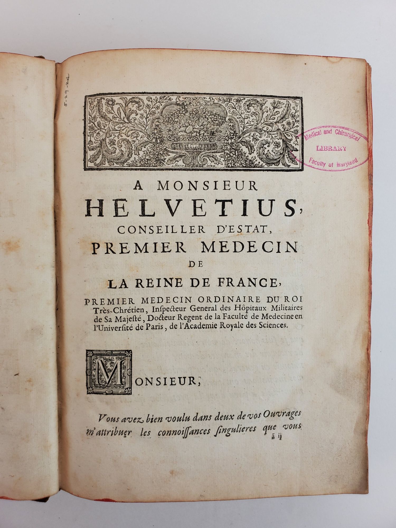 Paris: Guillaume Desprez et Jean Desessartz, 1732. Hardcover. Quarto, xxx, 740 pages with 4 folding plates. In Good minus condition. Bound in contemporary leather with raised bands and gilt ornamentation to spine. Bands worn, with moderate chipping to head and tail of spine and significant cracking to joints. Boards with general craqueleur and rubbing to edges and corners. Text block edges stained red. Text block age toned and slightly foxed with more significant discoloration to end papers and minor waving to fore edge. An ex-library copy with usual markings, including a bookplate to front pastedown, institutional stamps to several pages and call number written in pencil. MF Consignment. Shelved in Upstairs Hall. 1355845. Special Collections.
