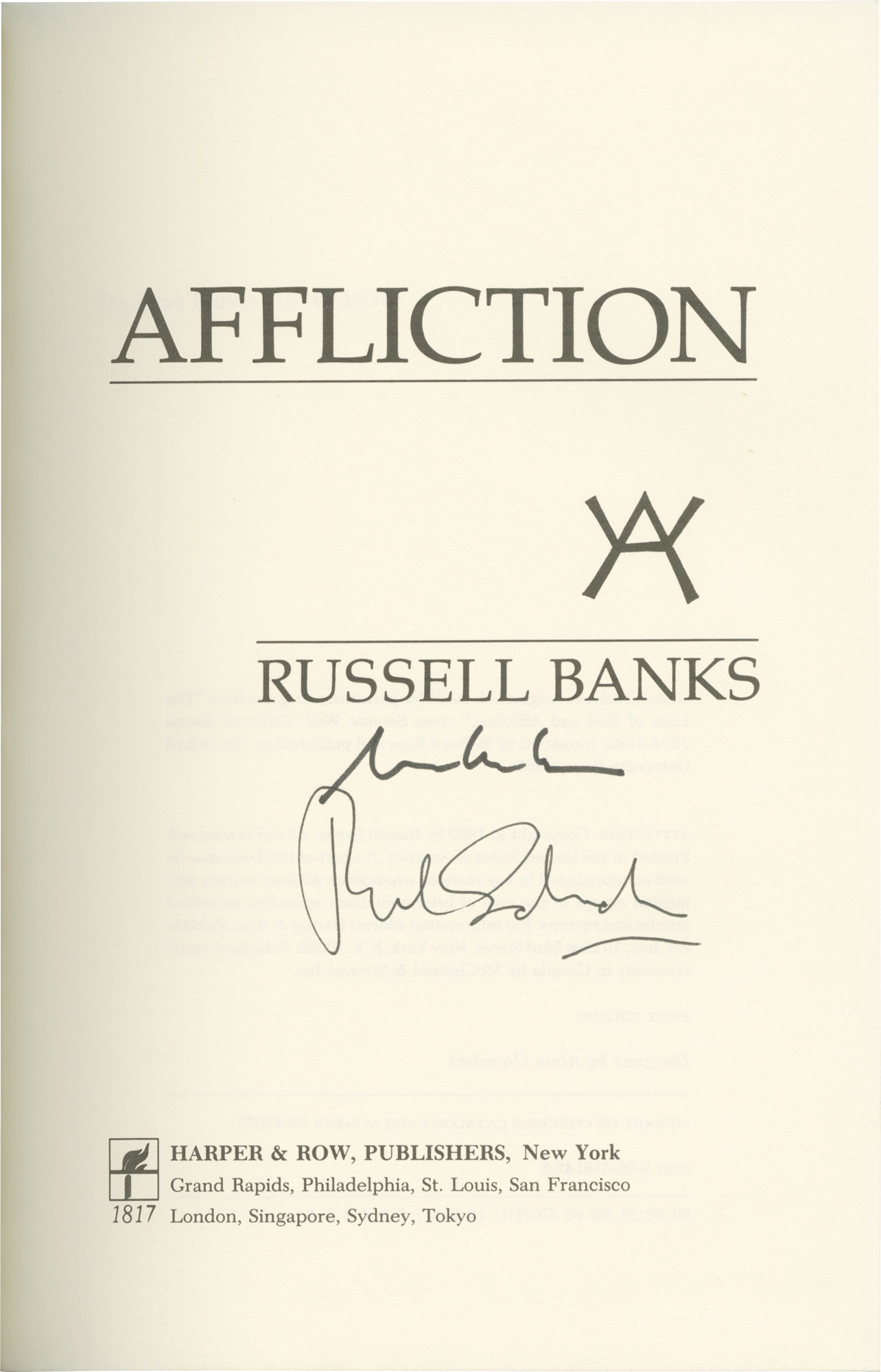Affliction (First Edition, signed by the author and by Paul Schrader)