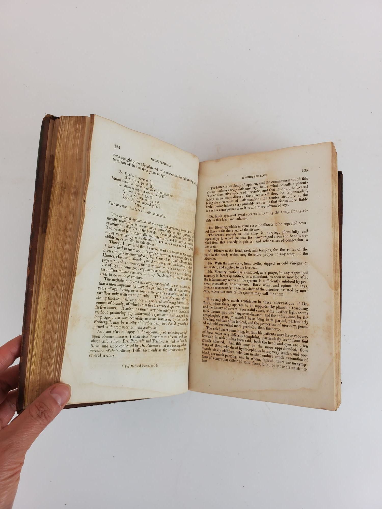 Philadelphia: James Webster, 1818. First Thus. Hardcover. Octavo, xviii, 186 pp (Vol. 1); vi, 96 pp (Vol. 2); xi, 73 pp (Vol. 3). From the Sixth London Edition. Fair; bound in contemporary leather with surface marks and areas of discoloration to boards; chipping and wear to spine edges and corners; hinges cracked, binding else tight; text block somewhat discolored; some foxing and age-toning to pages throughout. MF Consignment. Shelved Case 13. 1356261. Shelved Dupont Bookstore.