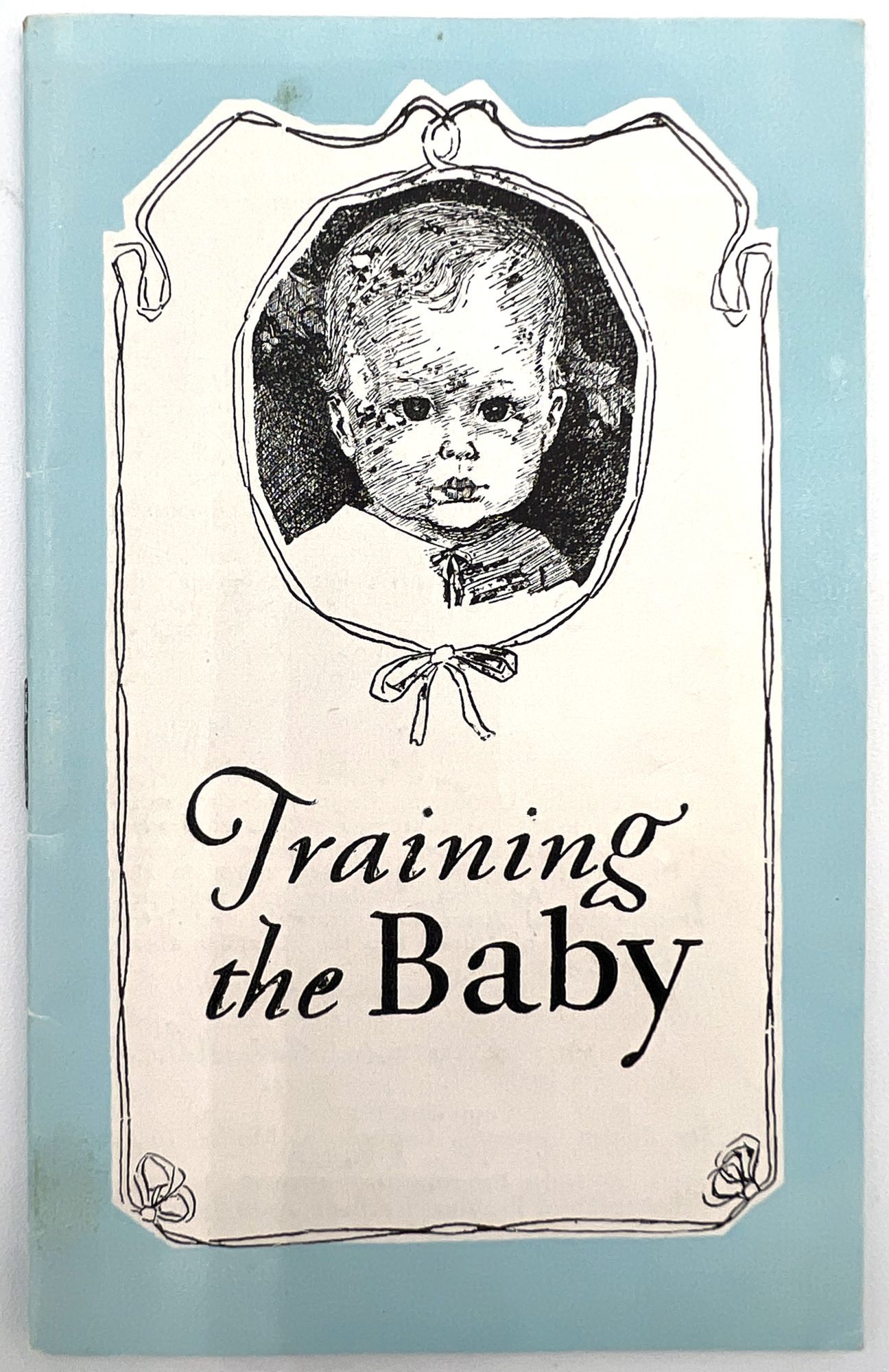 Four editions of "Training the Baby". Fort Wayne: Juvenile Wood Products, Inc., 1929, 1939, 1947, and 1955. Four editions of a booklet on toilet training, advertising products sold by Juvenile Wood Products, Inc. Each measures approx. 4.75" by 3", and is stapled in the original illustrated wrappers. The 1939 edition has an agents ink stamp to its upper cover. Fine examples of how mothers of the time were training themselves to put the child on Little Toidey, as soon as they could sit, far to young children for children to understand the concept.