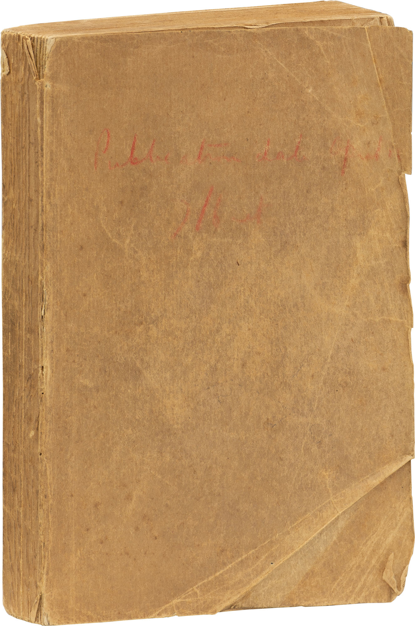 Fair to Good in fragile brown unprinted wrappers, as issued, with a manuscript notation on the front panel indicating a publication date of February 6, 1940. Shelf wear, spine lean, creasing and lifting at the spine panel and corners of the wrappers. In a custom maroon quarter-leather clamshell box.