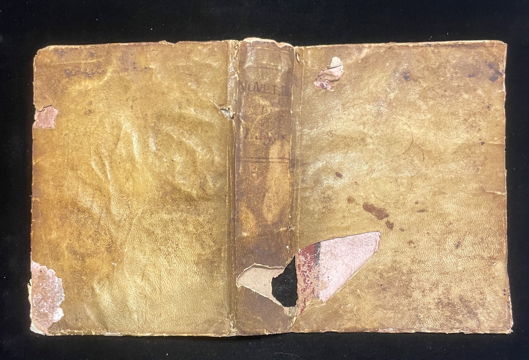 Barcelona: Imprenta de Maria Angeli Marti, 1764. 1st Edition Thus. Hardcover. Good. Presumed original vellum over original binding, missing a large piece front cover, binding and covers detached from bound leaves. Internals quite nice. The Martí printing and bookshop business began in 1700, when Joan Pau Martí, her husband, acquired the printing press from Sebastià de Cormellas , whose family, in turn, had bought the Humbert Gotart printing press in 1591. The Joan Pau's widow, Maria, runs the workshop between 1723-1737. The theme of the published books is fundamentally religious. The most splendid period of the Impremta Martí corresponds to the one run by the widow of her son Maur, Maria Àngela (1754-1770), helped by the master printer, Antoni Rovira. Despite continuing to publish religious books, of which she published 130 titles, Maria Àngela printed the exemplary Novels of María de Zayas (1764) and cookbooks such as Francisco Martínez Montiño, Arte de cocina, pasteleria, vizcocheria y conservaria(1763). The printing house was renamed Oliver Martí when Ignàsia, daughter of Maria Àngela i Maur, married the Barcelona bookseller Francesc Oliver; and changes its name again when a granddaughter of Maria Àngela, daughter of the Oliver Martí marriage, marries the Zaragoza bookseller Valerio Sierra. With the name Sierra i Martí, the printing press and bookshop remained active until the first third of the 19th century . The Reserve Library of the University of Barcelona preserves more than 150 works published by Maria Àngela Martí as well as several examples of her printer marks, which she identified throughout her professional career. (Source: Wiki) Only in the city of Barcelona throughout the eighteenth century do we find other names of women printers: Maria and Teresa Mas Llach , Teresa Pou and Eulàlia Massià and our biographer, Teresa Mas Llach. [4].