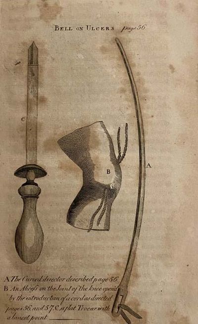 Boston: I. Thomas and E.T. Andrews, 1791. First American Edition. Full-Leather. Good/No Jacket. 0x0x0. First American edition of Garrison-Morton 5578. Evans 23171. Joints split but holding, edges rubbed with corners exposed and some loss from spine head and foot, ink name and date (Joseph Torrey 1791) on front endpaper. xv, 295 pp. Full leather, leather spine label with gilt titles and rules. Includes one engraved plate showing two surgical tools and an abscess of the knee joint. Author's first book. Bell was surgeon to the Royal Infirmary in Edinburgh for 29 years, and his contribution to the study of ulcers was significant. He made other advances to medical knowledge as well: he was the first to differentiate between gonorrhea and syphilis, and improved the methods of amputation with his 'triple incision' technique. Both Garrison-Morton and the Oxford Dictionary of National Biography (ODNB) characterize his 1783-8 six-volume work on surgery as his best work, but calls this work an "[i]mportant classification of ulcers." "Bell, Benjamin (1749 - 1806), surgeon and farmer, eldest son of the fifteen children of George Bell (1722 - 1813), farmer, and Anne, nee Corrie, of Speddoch, was born at Dumfries in April 1749. He was descended from landed proprietors of long standing in Dumfriesshire. Subsequently the family moved to Woodhouselees, Canonbie, in Eskdale, about a mile from the border with England, where George Bell was considered 'one of the best improvers of the land in the district in which he lived' (Bell, Essays, X). Benjamin Bell was educated at Dumfries grammar school, and in 1764 was apprenticed to James Hill, surgeon, of Dumfries. In 1766 he entered the Edinburgh medical school, where Monro primus and secundus, Joseph Black, and John Gregory were among his teachers. House surgeon to the Royal Infirmary, he became fellow of the College of Surgeons of Edinburgh in 1770, and then studied surgery in London and Paris for almost two years, being appointed surgeon to the Royal Infirmary, Edinburgh, in August 1772. About 1776 he married Grizel, daughter of Robert Hamilton DD, with whom he had a numerous family which included George Bell (1777 - 1832), a well-known surgeon; a grandson, Benjamin Bell (1810 - 1883), was also a surgeon and wrote a biography of his grandfather. Shortly after his marriage Bell sustained a severe injury in falling from a horse and gave up practice for two years to settle on a farm near Edinburgh, where his family lived from spring to autumn of every year. There he developed a profound interest in agriculture; later he was to occupy another farm, near Melrose Abbey. His earliest writings on agriculture appeared in 1783. Bell's first book, A Treatise on the Theory and Management of Ulcers, published in 1778, attracted considerable attention, achieved a seventh edition in 1801, and was translated into French, Italian, Spanish, Portuguese, and German. His most important work, A System of Surgery, illustrated with ninety-nine plates of instruments and equipment, appeared in six volumes between 1783 and 1788; it too reached a seventh edition in 1801, and was translated into Italian, French, Spanish, and German, despite criticisms from John Bell and Benjamin Brodie. In this textbook Bell proposed methods of reducing pain and of conserving skin during operations by careful techniques; he discouraged the proliferation of instruments, yet illustrated many new items from Europe and some of his own, which had been refined by extensive experience. James Wardrop wrote: 'He was a successful operator, and during many years, was more employed than any other surgeon in Scotland' (Bell, Life, 112). However, Bell led an arduous life, with many night journeys to visit distant patients in Scotland and northern England. Accumulating money, he purchased extensive estates near Jedburgh and near Melrose, and in Newington, Edinburgh. But his health suffered and periodically he stopped work to recuperate in southern England, where he also took note of local methods of agriculture. These breaks provided the opportunity to write, and in 1793 he published A Treatise on Gonorrhoea virulenta and Lues venerea in two volumes, which achieved three editions and was translated into Italian, Spanish, and French. Bell defined these venereal infections as separate diseases at a time when many, including John Hunter, believed that they were related. In 1794 he published A Treatise on the Hydrocele, on Sarcocele, or Cancer, and other Diseases of the Testis; no further editions appeared. Bell, who was concerned that agricultural production was not keeping pace with population growth, also wrote essays on taxation, the national debt, the corn laws, and agricultural reform. These were collected and published in 1802 as Essays on agriculture, with a plan for the speedy and general improvement of the land in Great Britain. Bell's conclusions were commended by Adam Smith." - ODNB