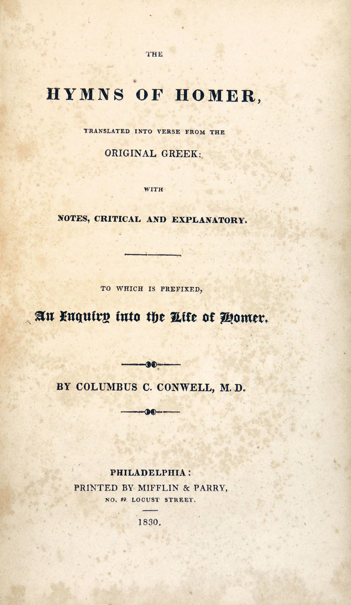 The Hymns of Homer, Translated into Verse from the Original Greek: with Notes, Critical and Explanatory. To Which is prefixed an inquiry into the life of Homer
