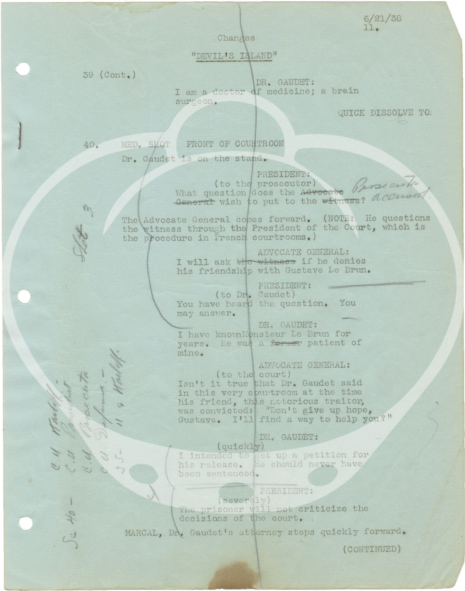 Devil's Island (Original screenplay for the 1939 film, copy belonging to director William Clemens)