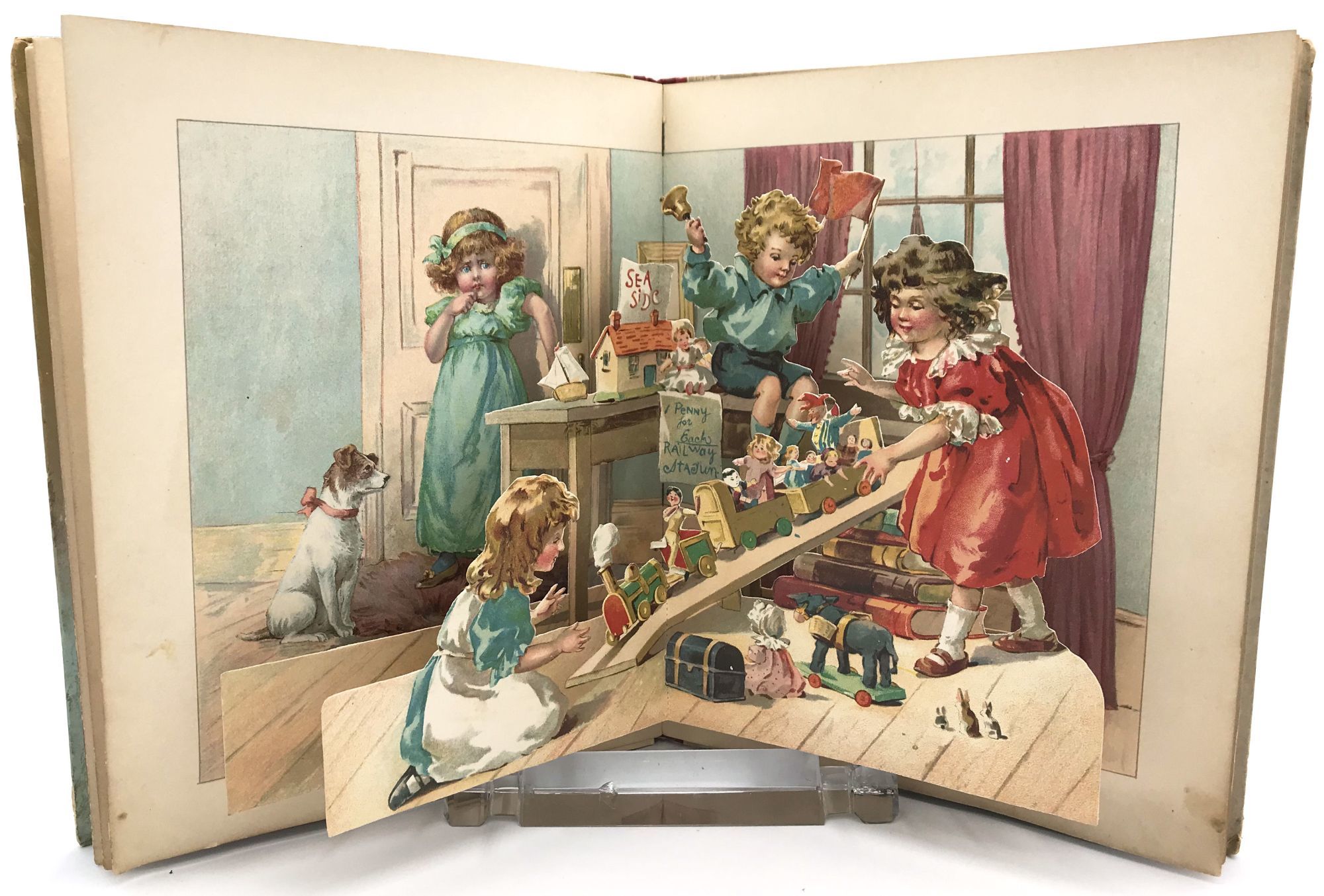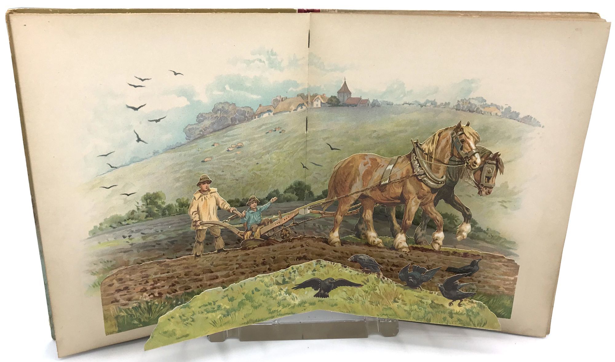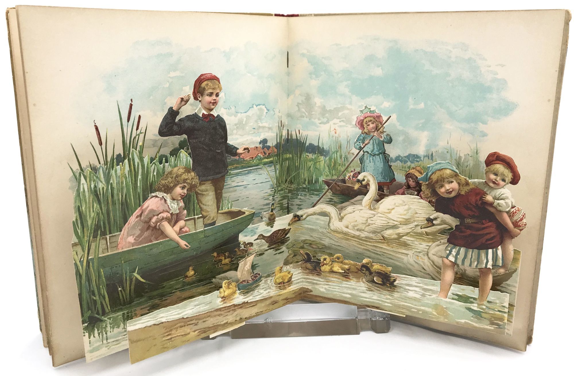 London and New York: Ernest Nister and E.P. Dutton & Co. Fine; extremities rubbed, central pop-up detached from spine.. A charming illustrated children's book of poetry and prose with four (4) two-page pop-up spreads depicting: a farmer and son plowing a field with horses; a sleeping child among a gentle flock of sheep and lambs; four children playing with toys in a living room; and another group of six children playing in boats and feeding swans, ducks, and their little ducklings. There are fourteen different short rhymes and stories, including "The Boy Who Wouldn't Wash", "The Little Fish and the Oyster", and "The Sand Castle". 4to (9.75" by 8"), pp. 28, with in-text illustrations and 4 full-spread pop-up scenes. Bound in original illustrated chromolithographed boards with patterned endpapers, red cloth spine.