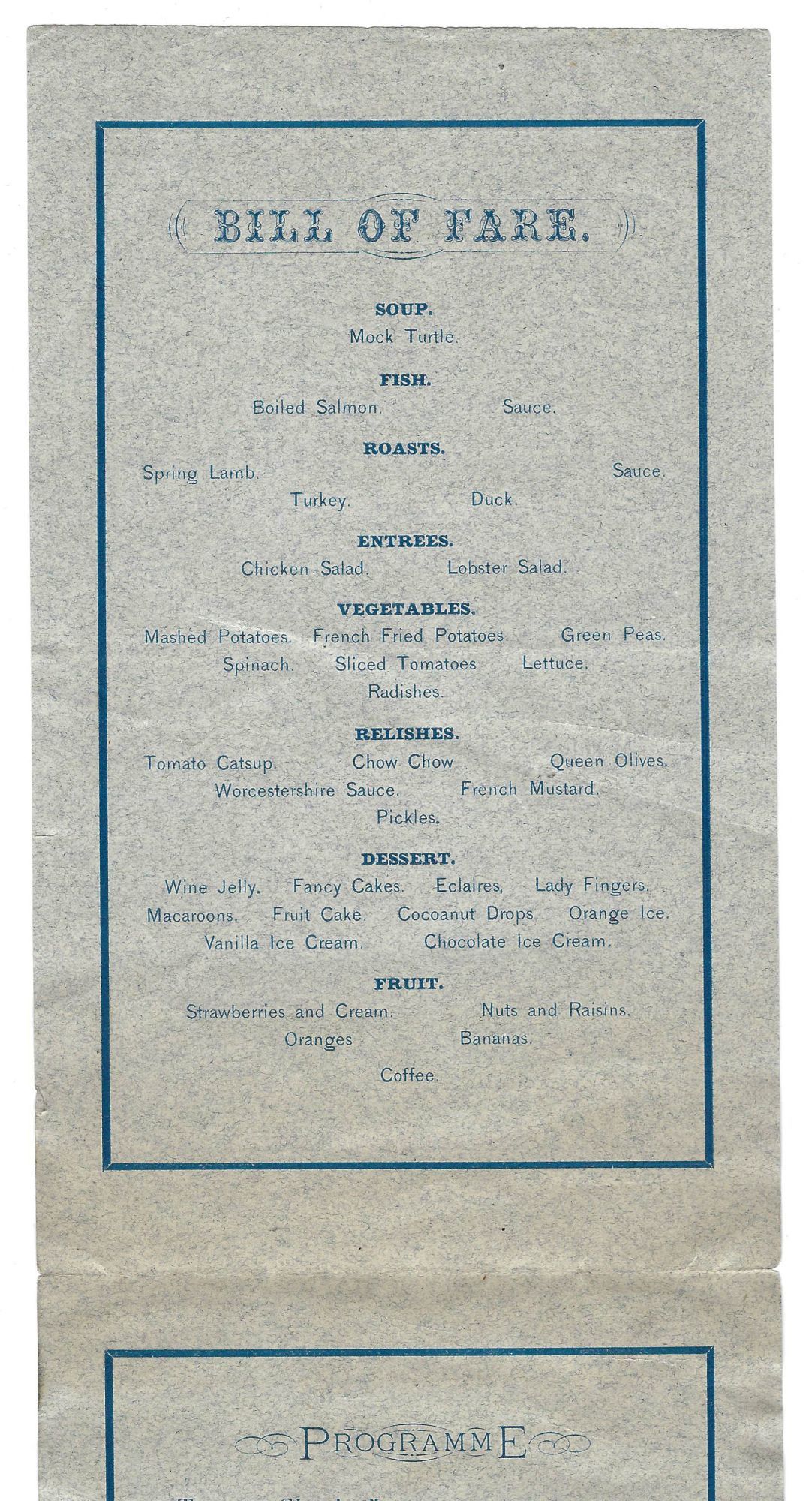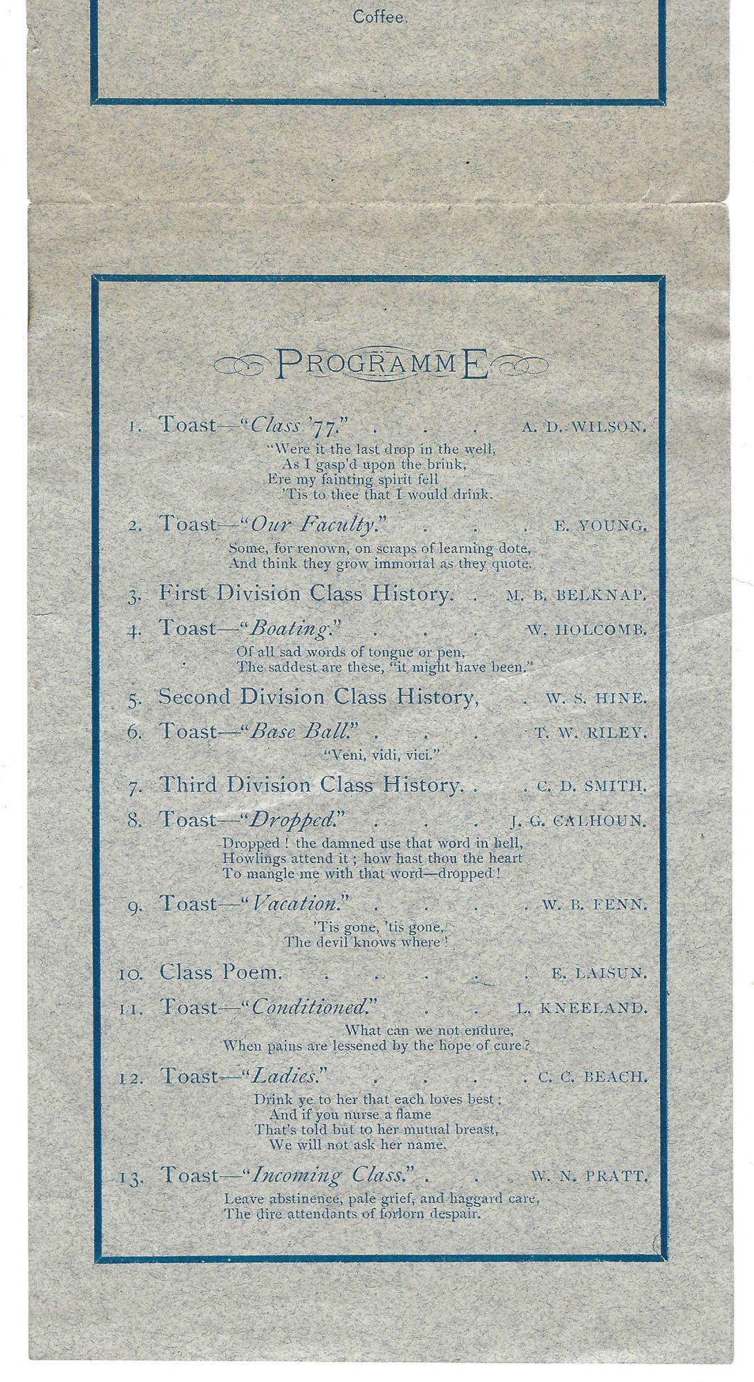 Program and Bill of Fare - Yale Class of 1877 Supper - Savin Rock