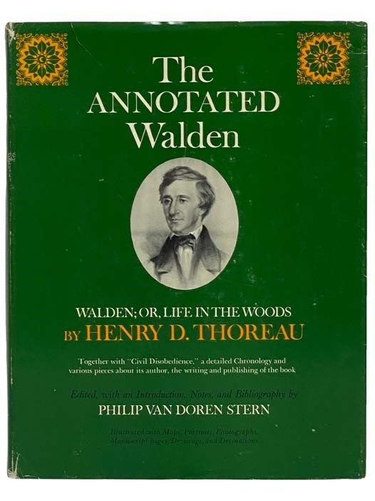 New York: Clarkson N. Potter, Inc./Publisher, 1970. First Edition. Large Hardcover. Very Good/Good. 9x6x1. First edition. Jacket edges rubbed with some chips and tears, jacket reverse taped at spine head and spine base. Minor highlighting. 1970 Large Hardcover. 502 pp. Edited, with an introduction, notes, and bibliography by Philip Van Doren Stern. Illustrated with maps, portraits, photographs, manuscript pages, drawings, and decorations. The Annotated Walden" by Philip Van Doren Stern was first released in 1970. The editor had also worked with the writings of Thomas de Quincey, Edgar Allan Poe, and Abraham Lincoln. In addition to the text of WALDEN, this volume includes many "extras": an extensive Thoreau biography, details about the original publication, a lifetime chronology based on Thoreau's journal entries, photos of people and places featured in HDT's life and in Concord, selected woodcuts illustrative of the time, a bibliography, an index, and an annotated version of the essay CIVIL DISOBEDIENCE. The explanatory notes -- the essence of an annotated edition -- shed some light on the more complex references and turns of phrase.