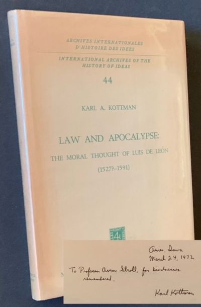 The Hague: Martinus Nijhoff, 1972. Cloth. Near Fine/Near Fine. A rare Dedication copy: WARMLY INSCRIBED BY THE AUTHOR KARL KOTTMAN TO PROFESSOR AVRUM STROLL, ONE OF THE BOOK'S ELEVEN DEDICATEES. A very sharp copy to boot of the 1972 1st edition. Clean and Near Fine in a crisp, Near Fine dustjacket. Octavo, #44 in Martinus Nijhoff's "International Archives of the History of Ideas" series.