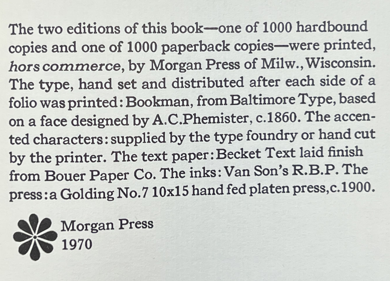 Madison: Seventies Press, 1970. First Edition. Hardcover. Near Fine/Very Good. Translated by Robert Bly. Near Fine in a Very Good jacket, unclipped ($3.00), toned at the spine and edges, large closed tear at the bottom of the front panel, a small chip at the bottom-right corner. Blue boards with gilt lettering on the spine. Firmly bound with a backward lean, clean internally. One of 1000 copies of the Nobel Prize-winner's first publication in English.