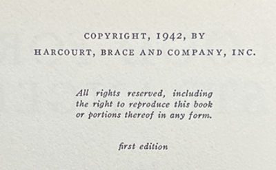 New York: Harcourt Brace and Company, 1942. First Edition. Hardcover. Fine/Near Fine. Fine in a Near Fine jacket, unclipped ($2.00), toned at the flaps, a few small chips and spots of rubbing at the edges and corners. Red buckram with black ink lettering on the spine. Square and firmly bound, clean internally. Jarrell's first collection of poetry. This is Jarrell's only collection to be published before he joined the Army during World War II, an experience that informed much of his subsequent writing. Still, these poems don't express an entirely optimistic view of the world. As Elizabeth Drew writes in her 1942 review in The Atlantic, "Dying individuals, dying cultures, dying worlds haunt his poems, all crying for life but trapped in death.