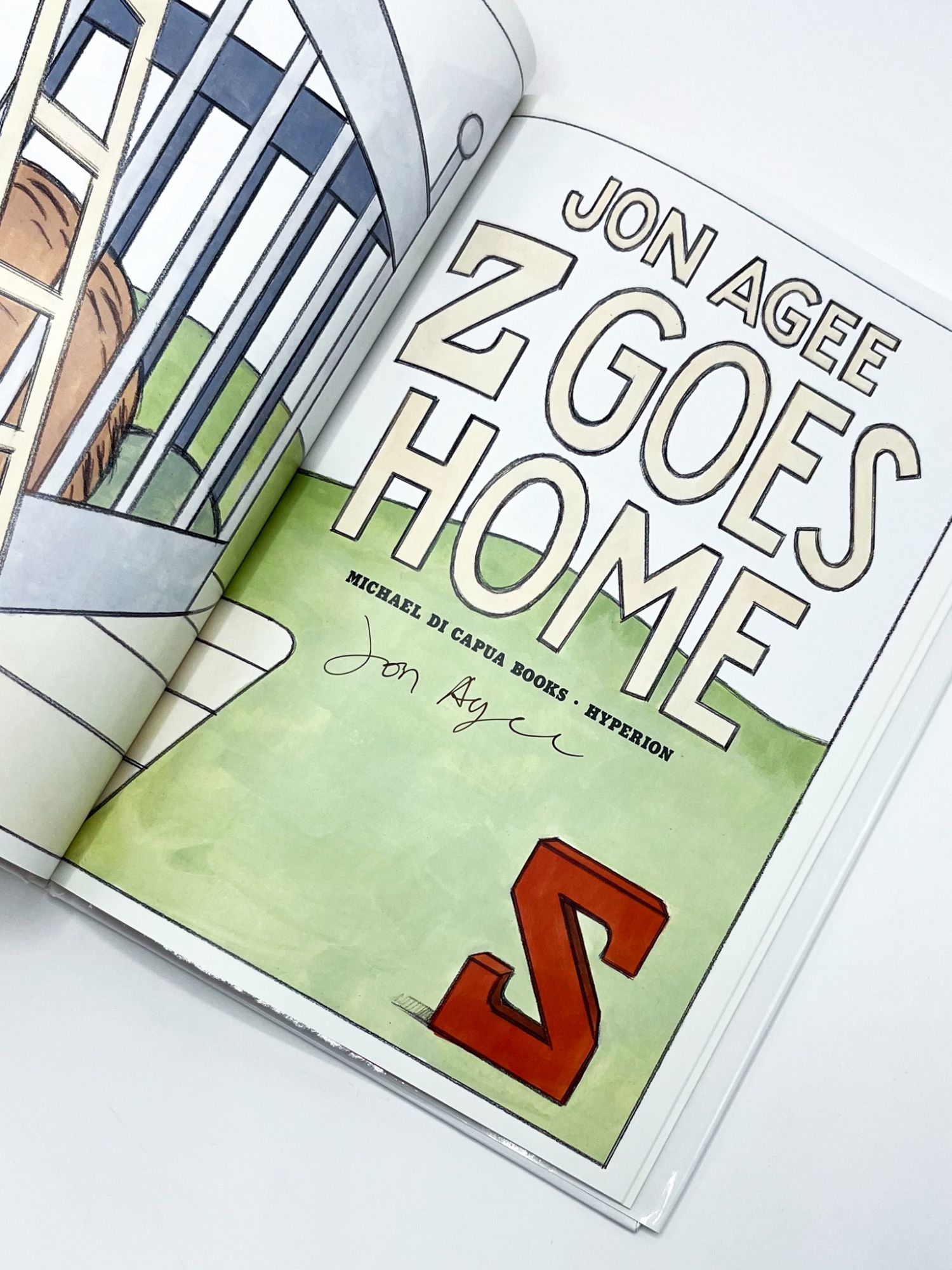 New York: Hyperion Books for Children, 2003. First edition. Fine in fine dust jacket.. Signed first printing of this largely wordless alphabet picture book, the story of the letter Z's commute home after a long day of being the first letter in "zoo" Jon Agee studied painting and animation at the Cooper Union, an education evident in his bold illustrations – he imbues even inanimate objects with a sense of motion through his sketchy outlines. His affinity for the absurd makes for delightful reading. 12.25'' x 8.25''. Original color pictorial boards. Original unclipped ($16.99) color pictorial dust jacket. Illustrated in color. [16] leaves. Signed by Agee to title page. Sharp.