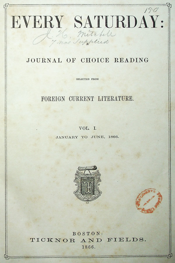Every Saturday: Journal of Choice Reading Selected from Foreign Current Literature. Vols I-V (Jan 1866- Jun 1868)