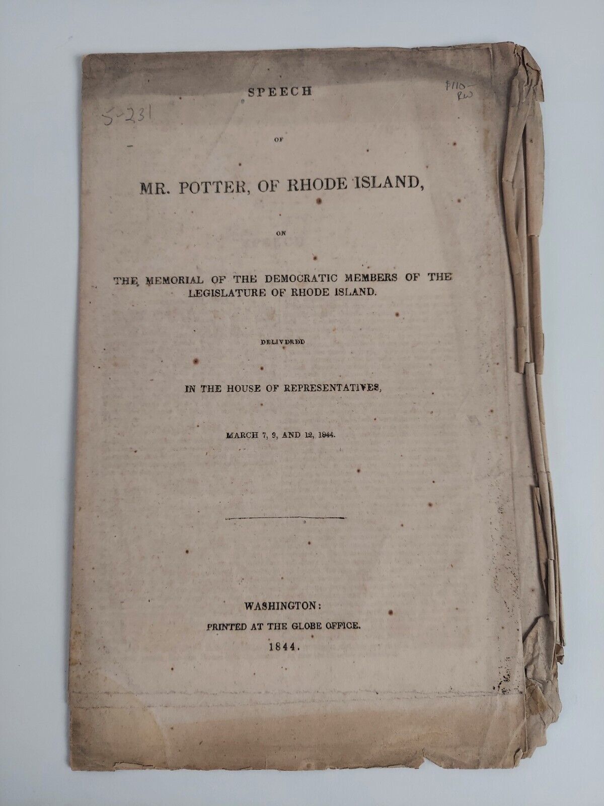 Speech of Mr. Potter, of Rhode Island, on The Memorial of the Democratic Members of the Legislature of Rhode Island, Delivered in the House of Representatives, March 7, 9, and 12, 1844