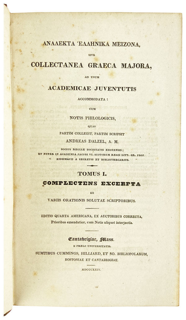 - Cantabrigiae, MA: E Prelo Universitatis. Sumtibus Cummings, Hilliard et So. Bibliopolarum, 1824