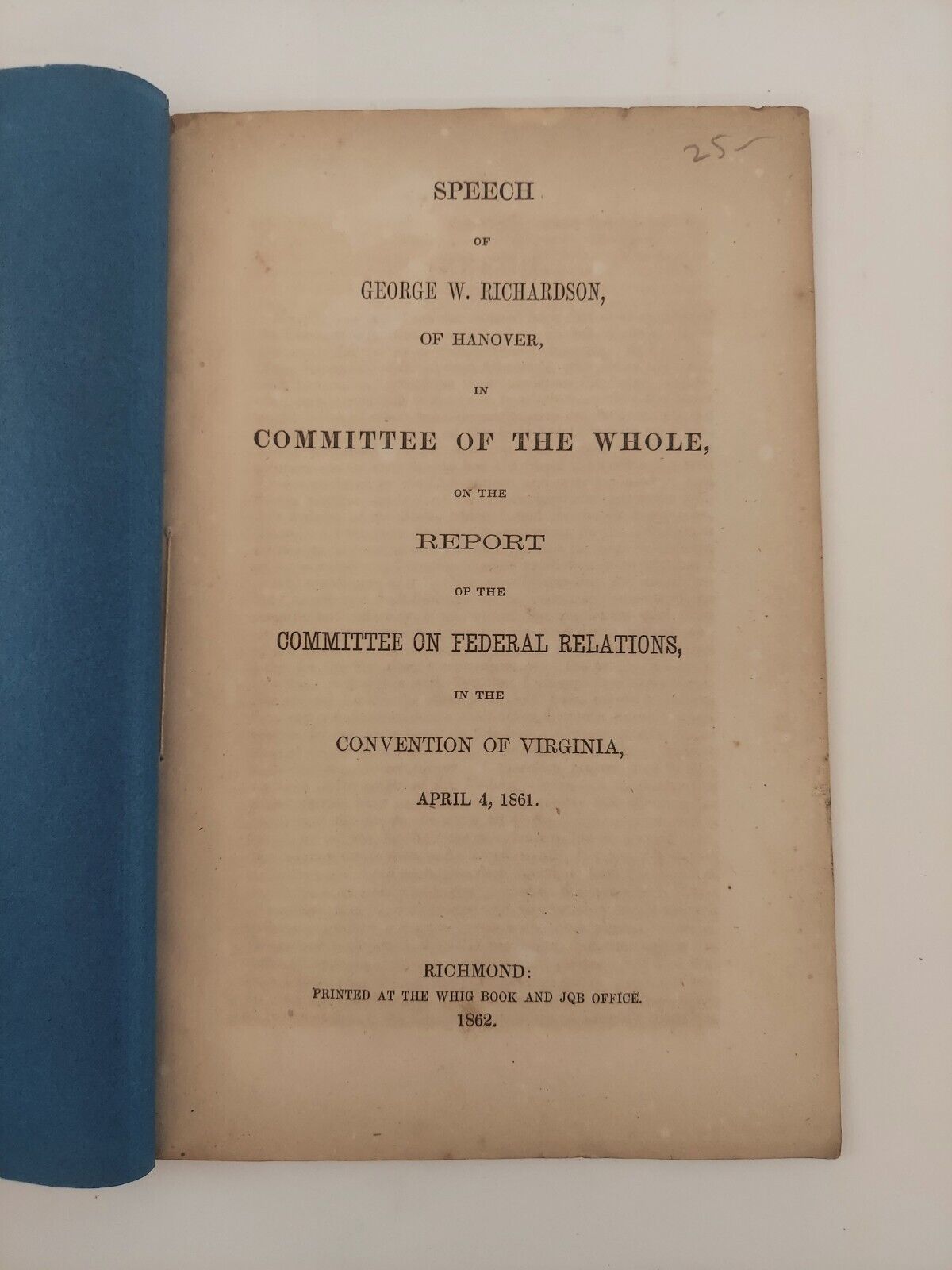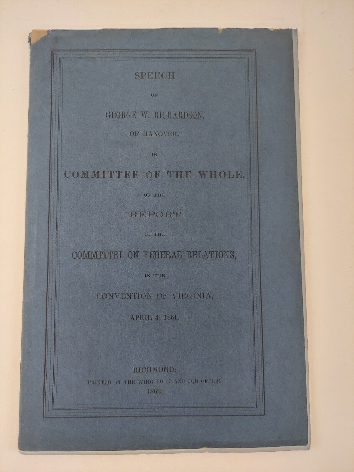Speech of George W. Richardson, of Hanover, in Committee of the Whole, on the Report of the Committee on Federal Relations, in the Convention of Virginia, April 4, 1861