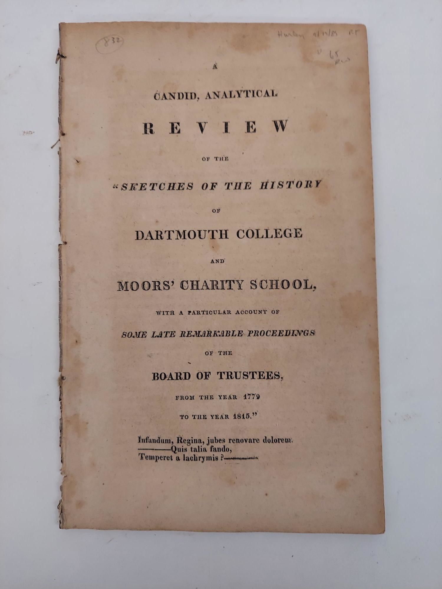 A CANDID, ANALYTICAL REVIEW OF THE SKETCHES OF THE HISTORY OF DARTMOUTH COLLEGE AND MOORS' CHARITY SCHOOL, WITH A PARTICULAR ACCOUNT OF SOME LATE REMARKABLE PROCEEDINGS OF THE BOARD OF TRUSTEES, FROM THE YEAR 1779 TO THE YEAR 1815