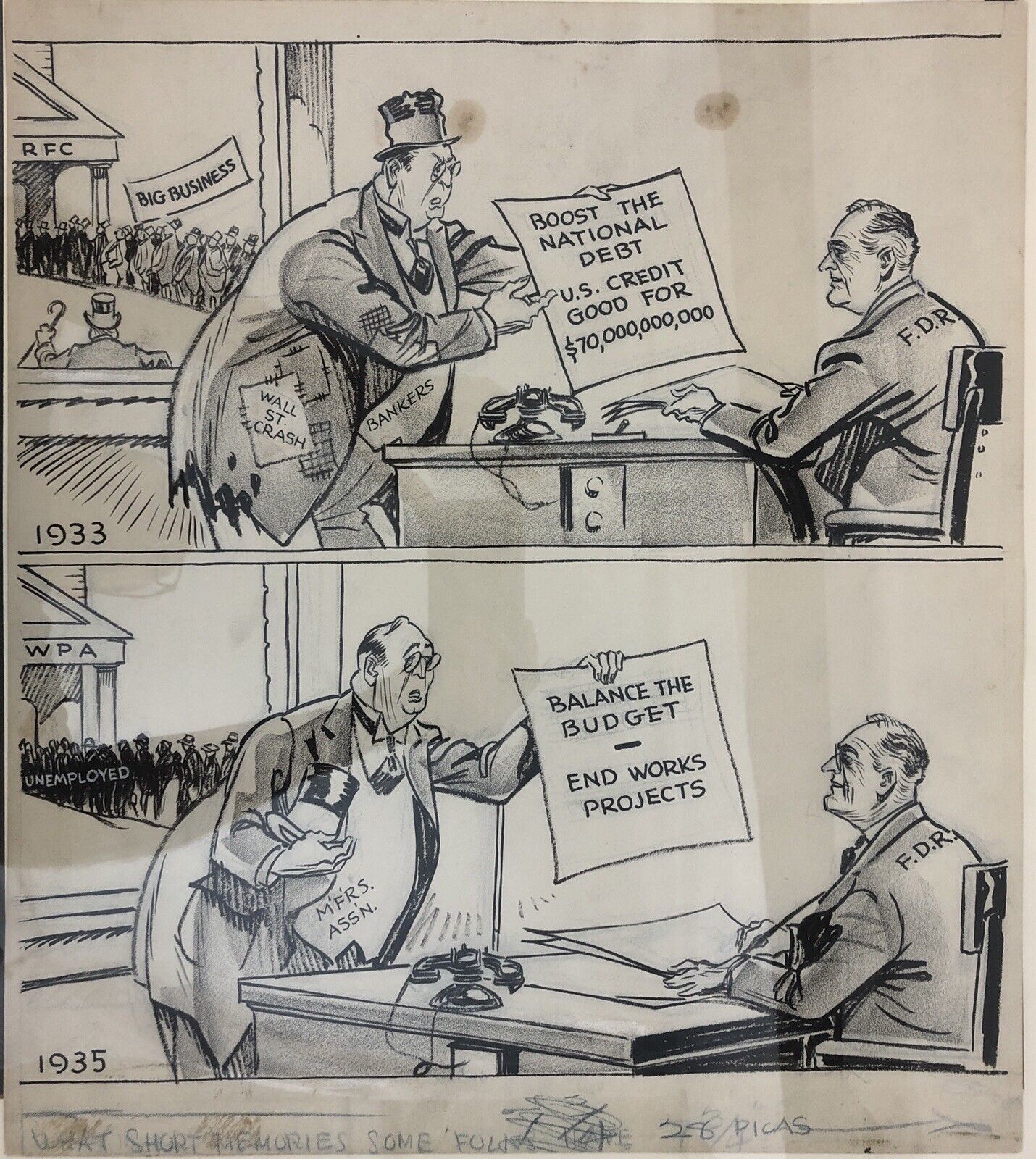 1930's POLITICAL CARTOON ARTIST UNKNOWN