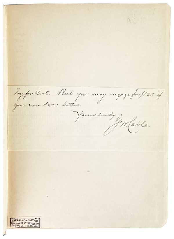 New York: Charles Scribner's Sons, 1909. Very Good. New York: Charles Scribner's Sons, 1909. First Edition. Octavo; publisher's blue pictorial cloth stamped in gilt, green, and white and signed in image "MA" by the designer Margaret Armstrong, top edge gilt; [6],162pp.; eight leaves of color plates, color pictorial title page. Light shelf wear, spine a bit toned and gilt dulled, contemporary bookseller ticket to front free endpaper, else Very Good and sound overall. Additionally tipped to front free endpaper is an excised portion of an autograph note from the author: "Try for that. But you may engaged for $125 if you can do no better. Yours truly / G.W. Cable."