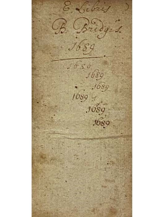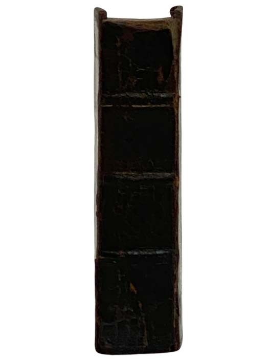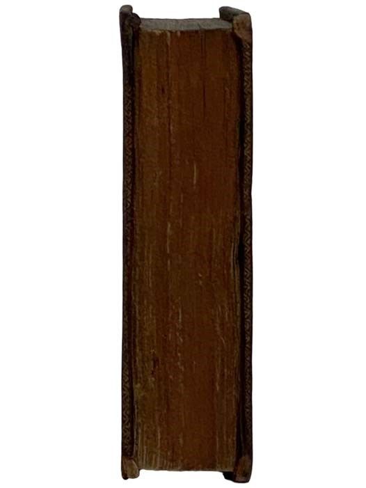 Amstelodami [Amsterdam]: Typis Ludovici Elsevirii [Lodowijk Elzevir], 1650. Full-Leather. Good/No Jacket. Spine toned with drying leather and some loss from head, joints beginning to split with 2 inch chip from spine base, but all sewings holding firmly, ink name and date (B. Bridges, 1689) on front free endpaper, which is loose but included, ink name on title page, minimal ink marginalia, pencil notes on rear free endpaper. 1650 Full-Leather. 589, [3] pp. A-Mm8, Nn4, Oo8, Pp4. 4 7/8 x 2 5/8. Full leather, blind-stamped borders and decorations, gilt rules on spine. Engraved title page showing a scribe seated with two other men, with an archway in the background. 63 colloquies in the original Latin with a brief biographical sketch of the life of Erasmus preceding text, footnotes throughout text. House of Elzevir edition, printed by Lodowijk Elzevir, who met Galileo in 1636. His grandfather founded the publishing company in the 1580s. One of the many works of the philosopher and Catholic theologian known as the 'Prince of Christian Humanists.' Published in 1518, the pages 'held up contemporary religious practices for examination in a more serious but still pervasively ironic tone' (Coffin/Stacey, Western Civilizations). Christian Humanists viewed Erasmus as their leader in the early 16th century. Erasmus' works had greater meaning to those learned few who had a larger knowledge of Latin and Greek. Colloquies in Latin means a formal written dialogue, thus in his book Erasmus explores man's reaction to others in conversations. The Colloquies is a collection of dialogues on a wide variety of subjects. They began in the late 1490s as informal Latin exercises for Erasmus' own pupils. In about 1522 he began to perceive the possibilities this form might hold for continuing his campaign for the gradual enlightenment and reform of all Christendom. Between that date and 1533 twelve new editions appeared, each larger and more serious than the last, until eventually some fifty individual colloquies were included ranging over such varied subjects as war, travel, religion, sleep, beggars, funerals, and literature. All of these works were in the same graceful, easy style and gentle humor that made them continually sought as schoolboy exercises and light reading for generations. "Originally written in his early days at Paris as dialogues illustrating the art of polite conversation, they were afterwards expanded into conversation pieces in which all the topics of the day were discussed with a freedom which ensured their popularity. Later in the century and up to the eighteenth century they were a set book in schools, and there are lines in Shakespeare which directly recall Erasmus's words." - Printing and the Mind of Man 53 (referencing the 1524 original)