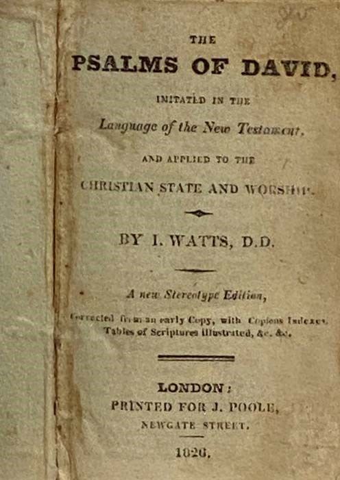 The Psalms of David, Imitated in the Language of the New Testament, and Applied to the Christian State and Worship. New Stereotype Edition, Corrected from an early Copy, with Copious Indexes, Tables of Scriptures illustrated, &c. &c. [with] Hymns and Spiritual Songs. in Three Books: I. Collected from the Scriptures.; II. Composed on Divine Subjects.; Prepared for the Lord's Supper