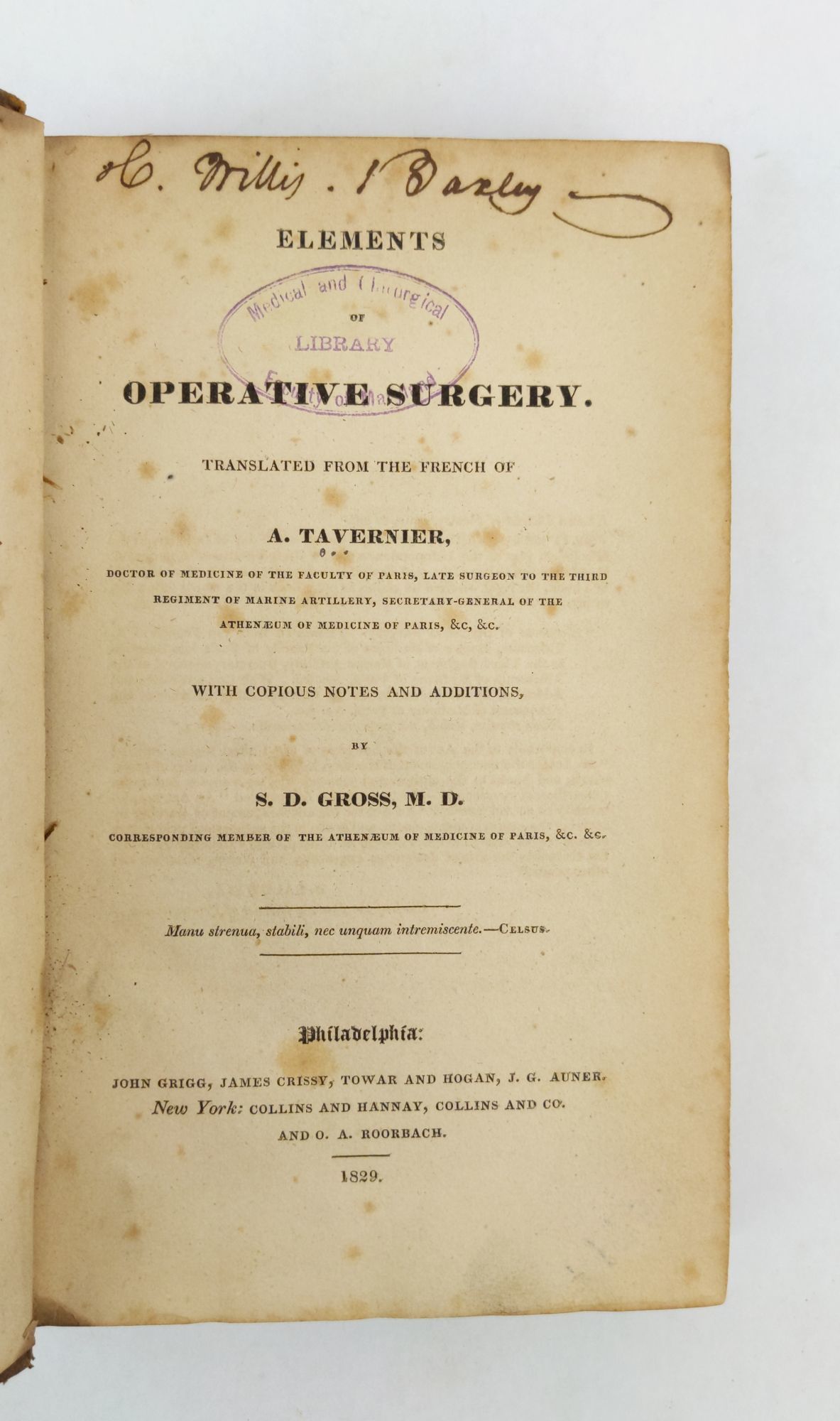 ELEMENTS OF OPERATIVE SURGERY. TRANSLATED FROM THE FRENCH OF A. TAVERNIER BY S. D. GROSS, M. D.