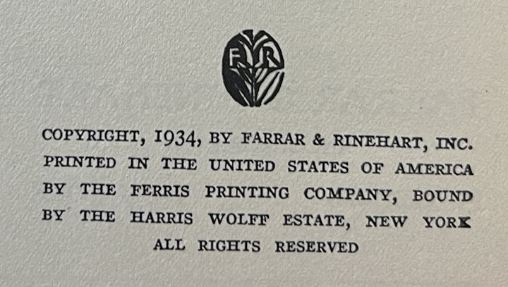 New York: Farrar and Rinehart, Inc, 1934. First Edition. Hardcover. Very Good/Very Good. Very Good in an about Very Good jacket, unclipped ($2.00), generally toned, a few chips and bumps at the edges, some creases affecting the lettering on the spine. Red buckram, lightly rubbed, with blue ink lettering on the spine and front board. Square and firmly bound with a blue top stain, clean internally. Rex Stout's anonymously published novel about the president's disappearance two hours before delivering a message about America entering the war.