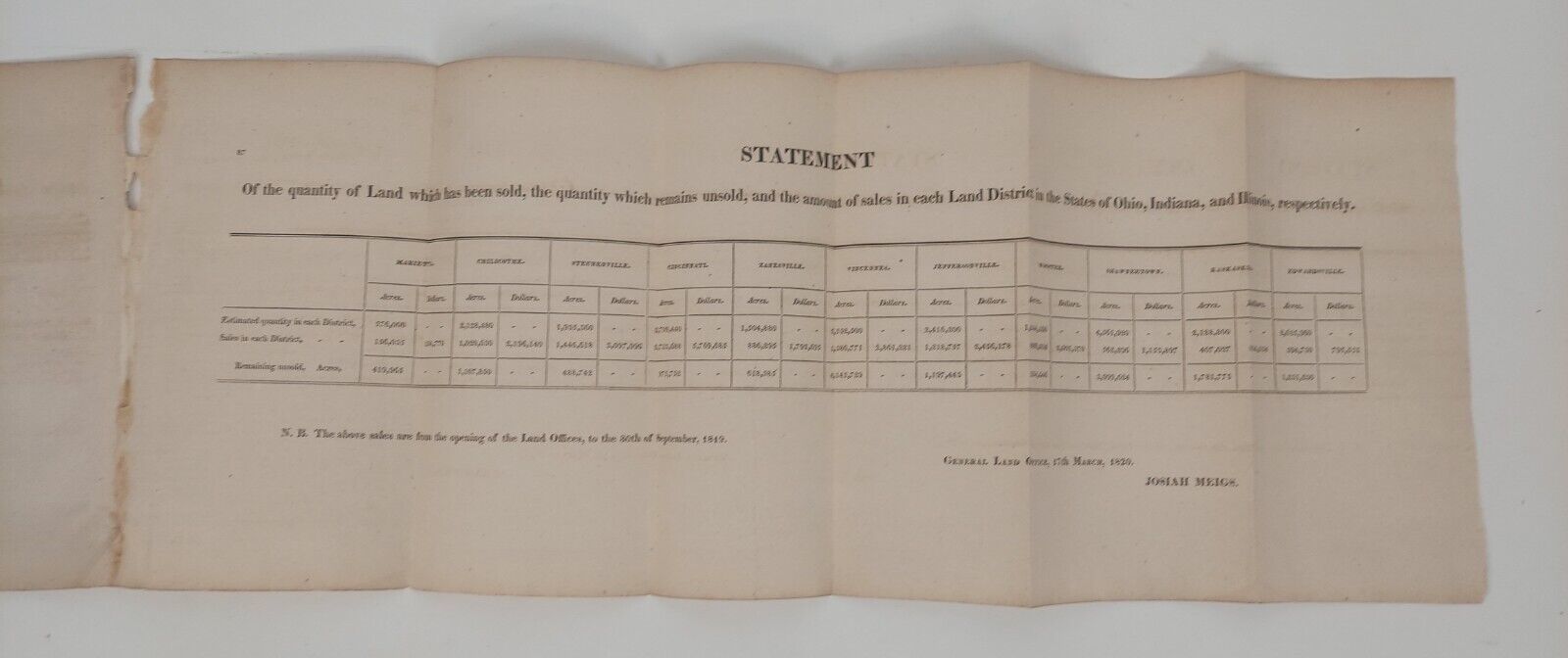 Washington: Gales & Seaton, 1820. Other. Disbound pamphlet; 1 page & foldout chart; G; tearing along spine from disbinding, bending at corners, slight chipping to edges, light age toning and foxing; RW; Shelved Room A. 1357968. Special Collections.
