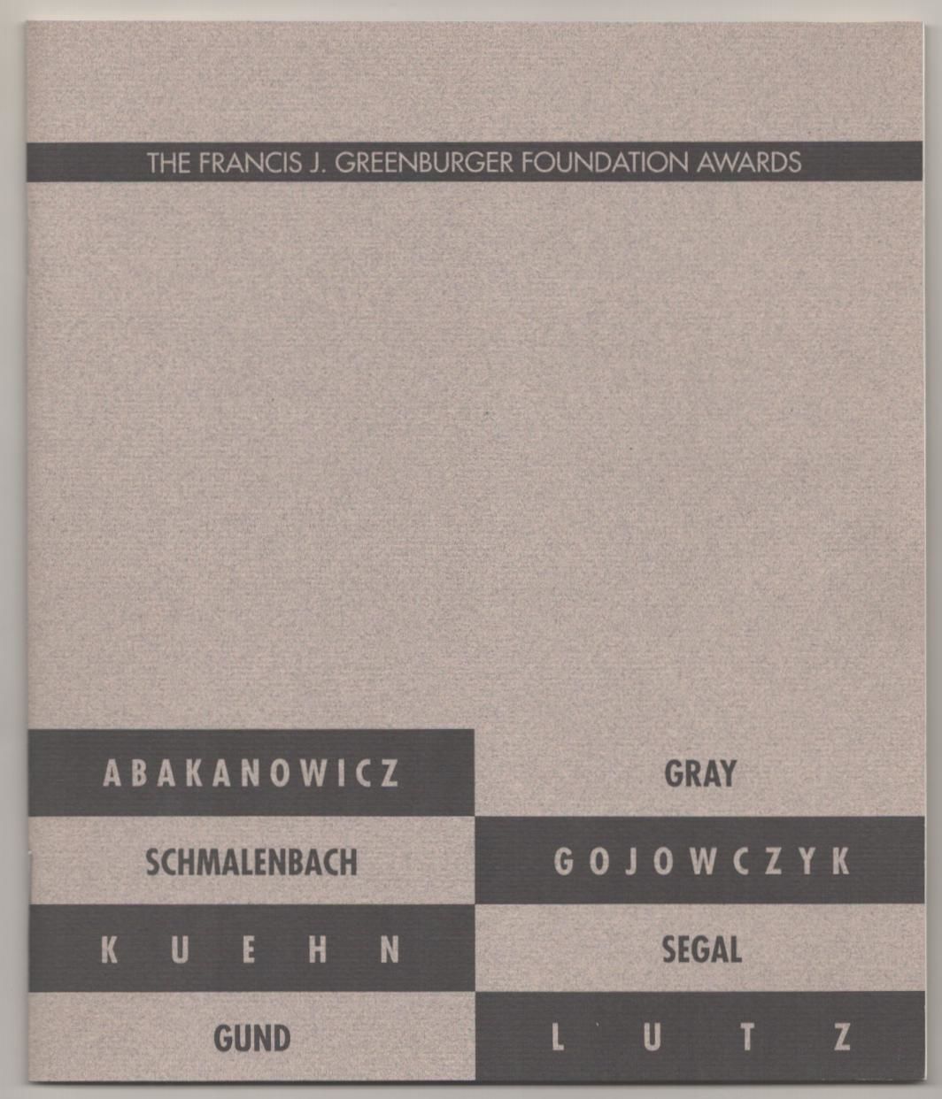 New york: The Francis J. Greenburger Foundation, 1992. First edition. Softcover. Catalog for awards with Magdalena Abakanowicz selected by Richard Gray, Hubertus Gojowczyk chosen by Werner Schmalenbach, Gary Kuehn chosen by George Segal, and Winifred Lutz selected by Agnes Gund. Includes text by each selector, brief biographical information about each artist and some black and white illustrations A clean near fine copy in stapled wrappers. Scarce, with no copies listed in OCLC.