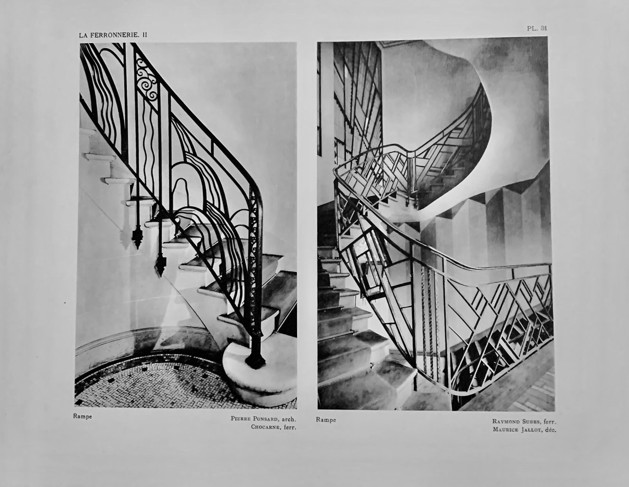 Paris: Albert Levy, 1929. First Edition. Hardcover. Orig. decorated board board portfolio with cloth ties intact. Very good. 7 text pages. 34 x 26 cm. Forty eight plates printed recto only. Includes full page Art Deco and Art Nouveau designs by a host of prominent architects and designers of the period including Jean Prouve, Edgar Brandt, Raymond Subes, M. Rux-Spitz et al. Interior contents clean and sharp, rubbed and nicked spine, covers lettered in black and red.