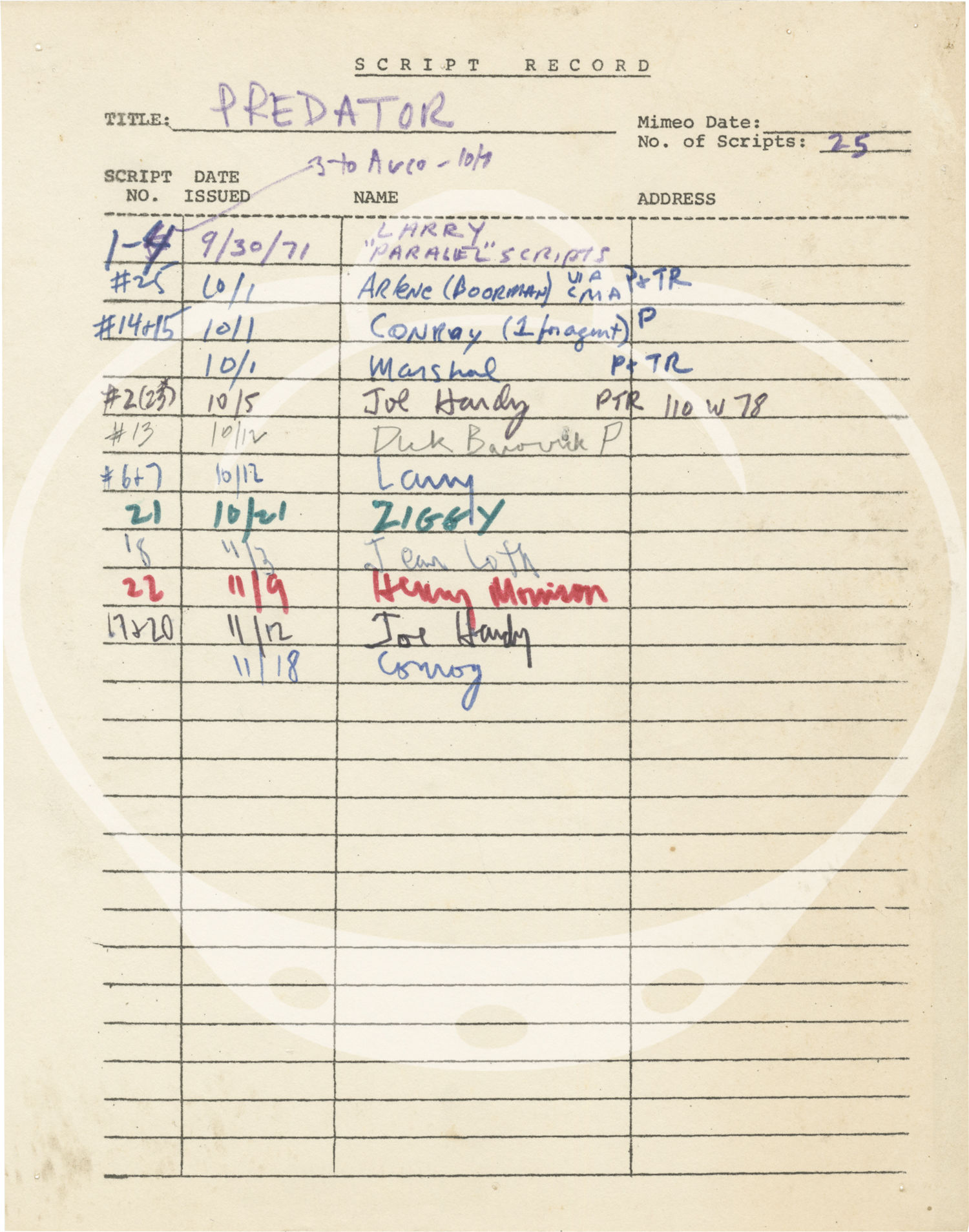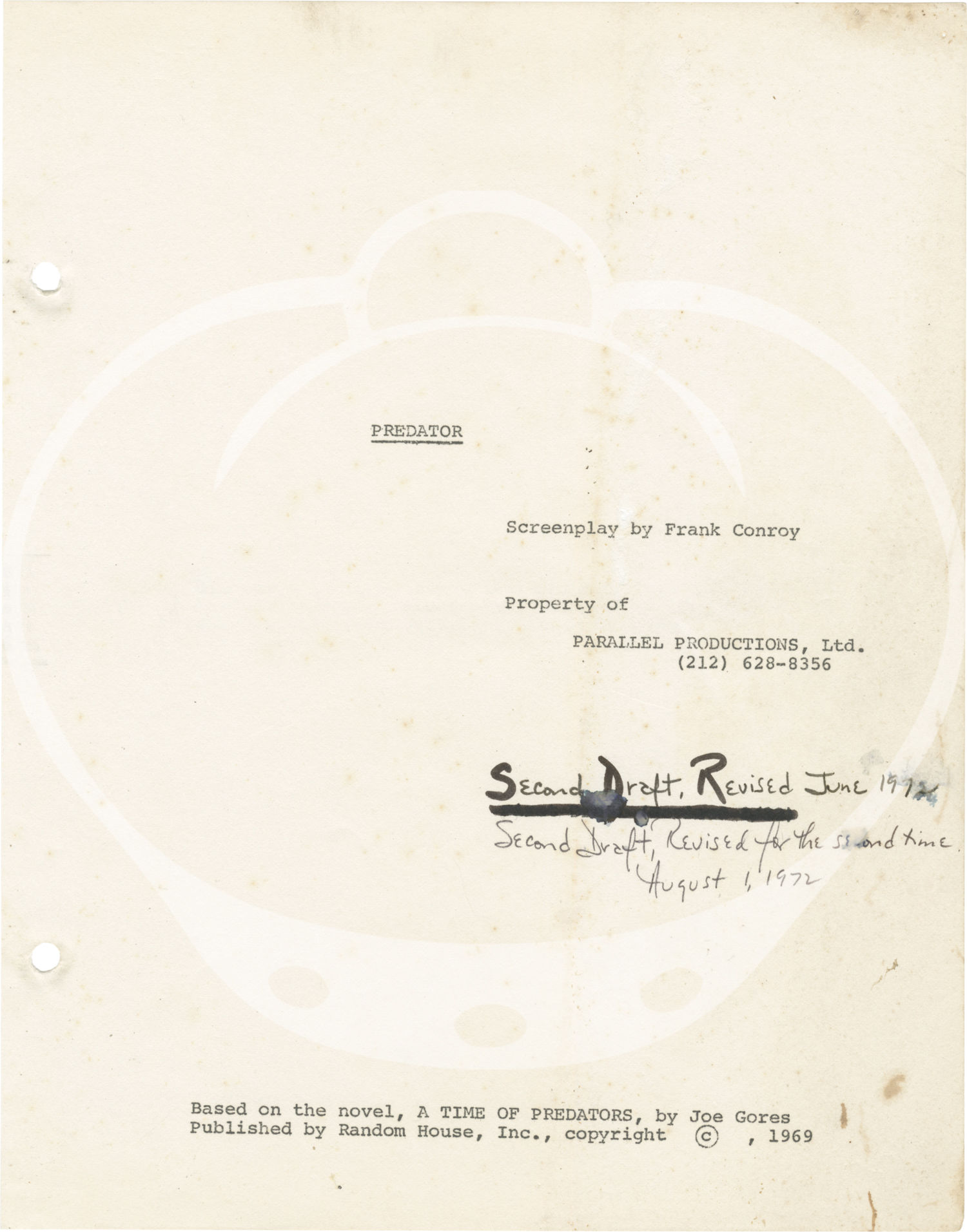 Predator [A Time of Predators] (Archive of material for an unproduced film, circa 1971-1972)