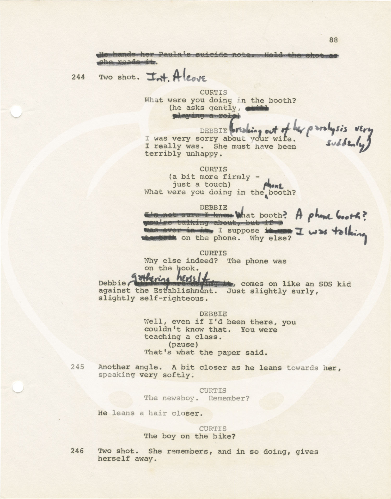 Maroon titled Studio Duplicating Service wrappers. Title page present, with credits for screenwriter Frank Conroy and novelist Joe Gores. 120 leaves, with last page of text numbered 119. Xerogrphic duplication, rectos only. Pages Very Good plus, wrapper Very Good plus overall, bound with two gold brads.