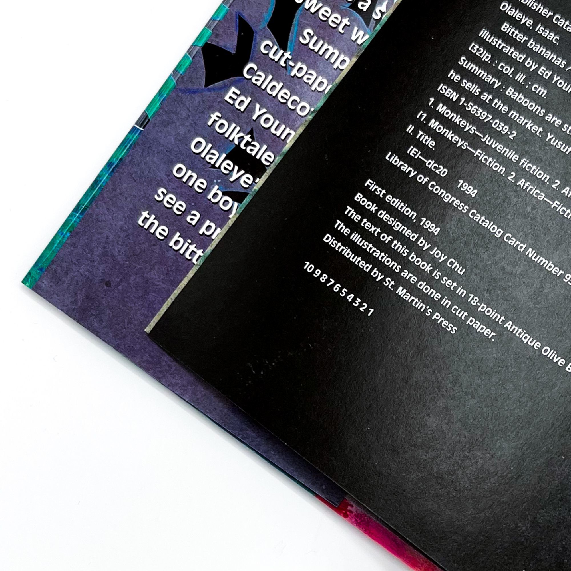 Honesdale, Pennsylvania: Boyds Mills Press, Inc, 1994. First edition. Fine in near fine dust jacket.. Signed first printing of this beautifully illustrated story by the Nigerian writer of little Yusuf's efforts to keep mischievous animals away from his food. Ed Young entered the world of illustration as a commercial artist, and this background in compelling visual storytelling is evident in all his books. Over his long career, he has earned two Caldecott Honors and two nominations for the prestigious Hans Christian Andersen Award. 11'' x 8.5''. Original color pictorial boards. Original unclipped ($14.95) color pictorial dust jacket. Illustrated in color. [36] pages. Signed by Young and Olaleye to front flyleaf, dated '96. Jacket with a hint of sunning to spine. Tight.