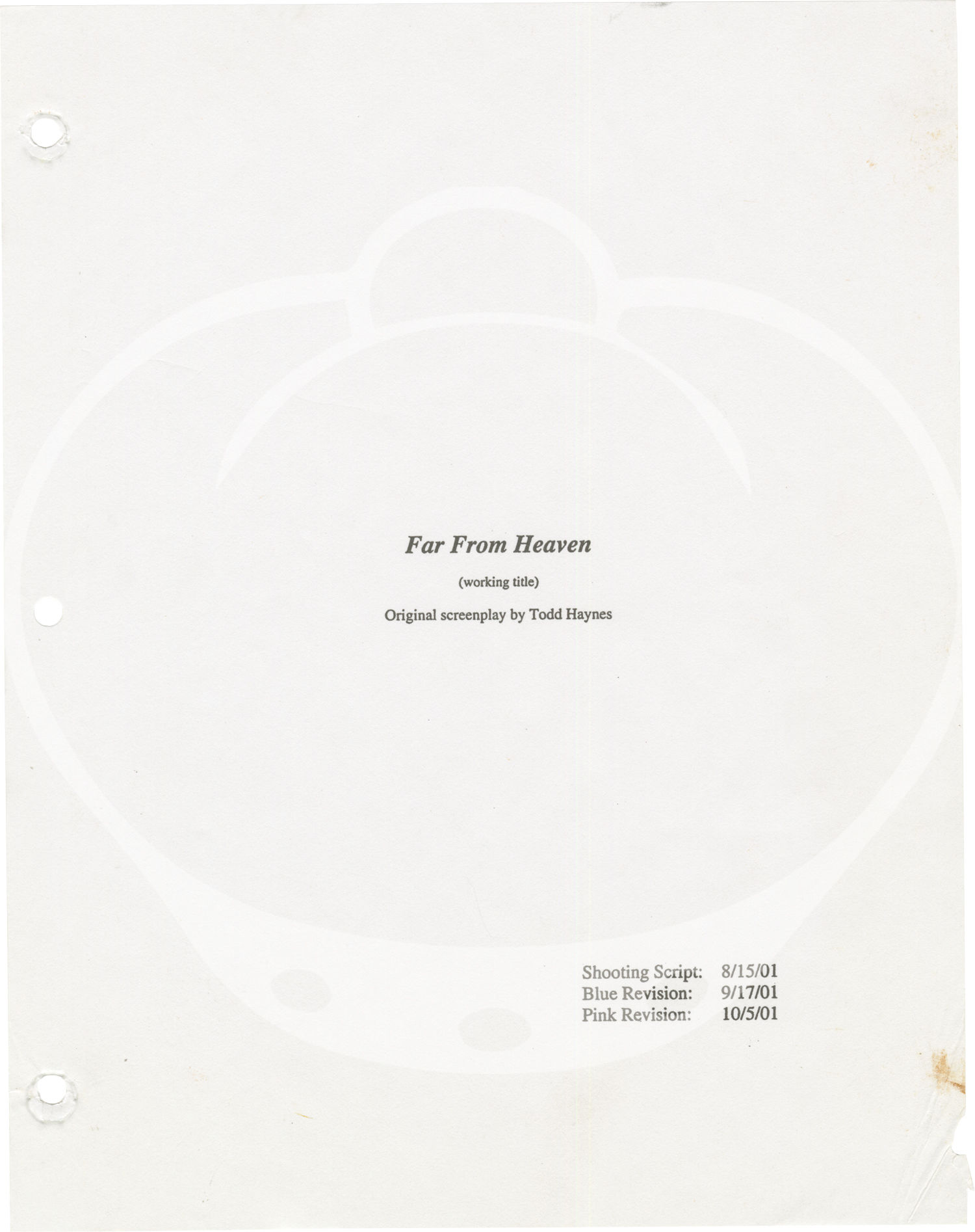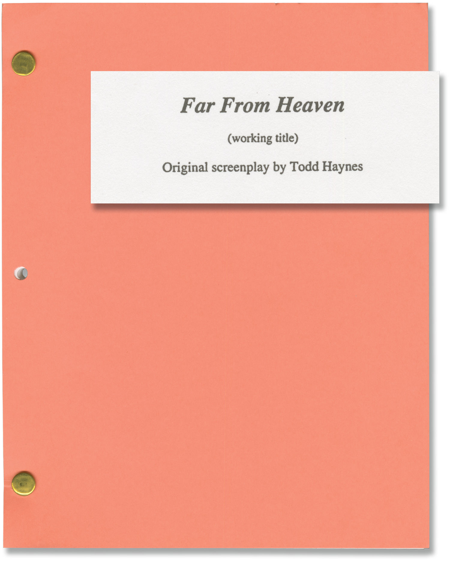 Salmon untitled wrappers. Title page present, dated 10/5/01, with credits for director and screenwriter Todd Haynes. 149 leaves, with last page of text numbered 130. Xerographic duplication, rectos only. Pages Near Fine, wrapper Near Fine, bound with two gold brads.