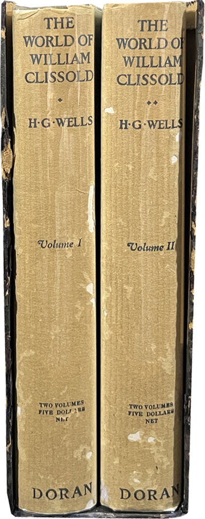 New York: George H. Doran Company, 1926. First Edition. Hardcover. Near Fine/Very Good. Complete in two volumes in a Poor example of the slipcase. Near Fine in Very Good jackets, unclipped (five dollars on the spines), faded at the spines and with some chips. Green buckram, faded at the spines, with gilt lettering. Square and firmly bound, clean internally. Wells's experimental novel that mixes narrative and didactic, contemplative discussions on modern issues.