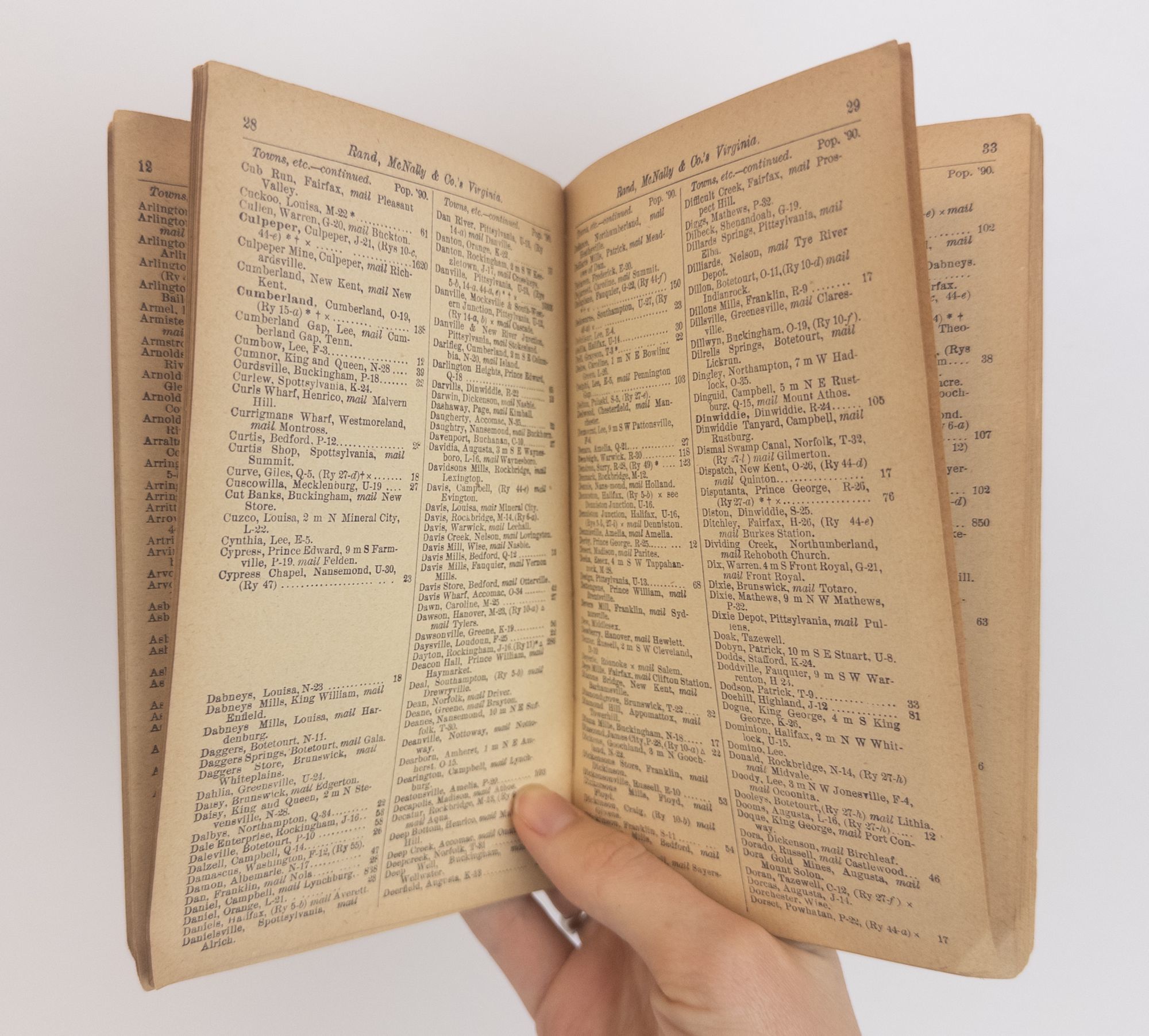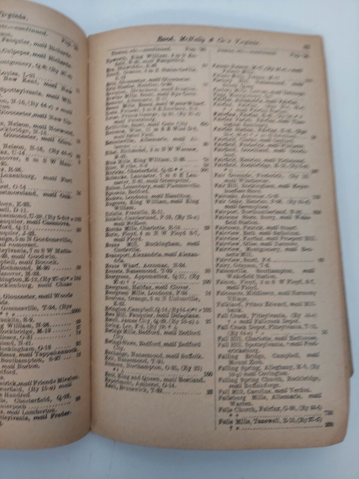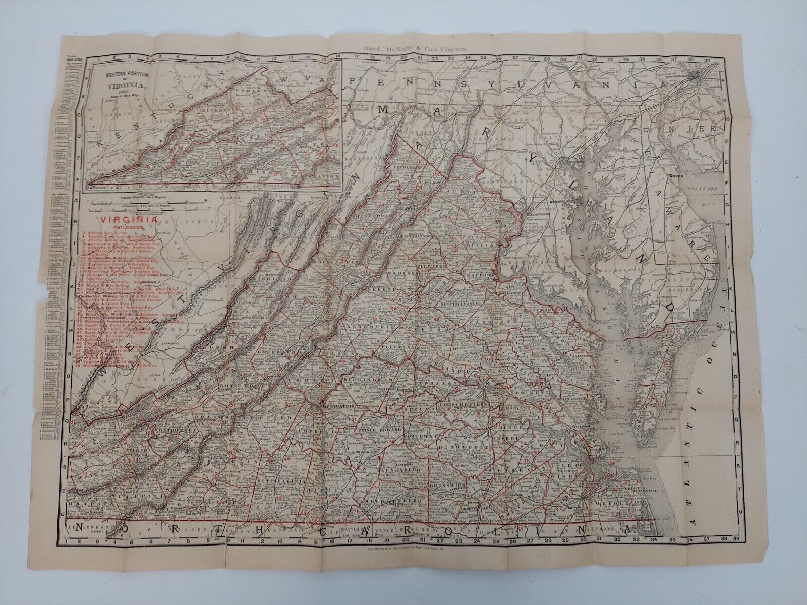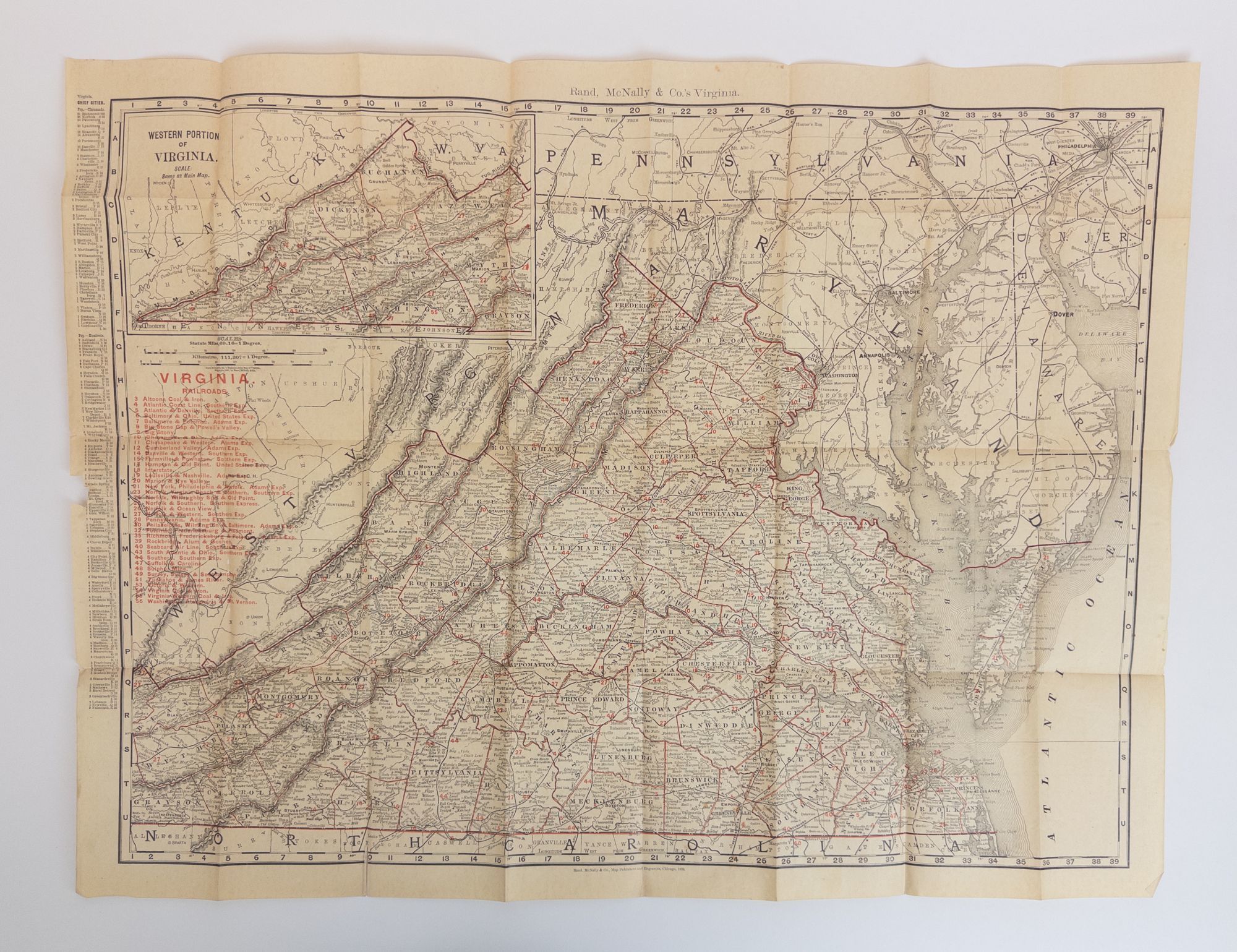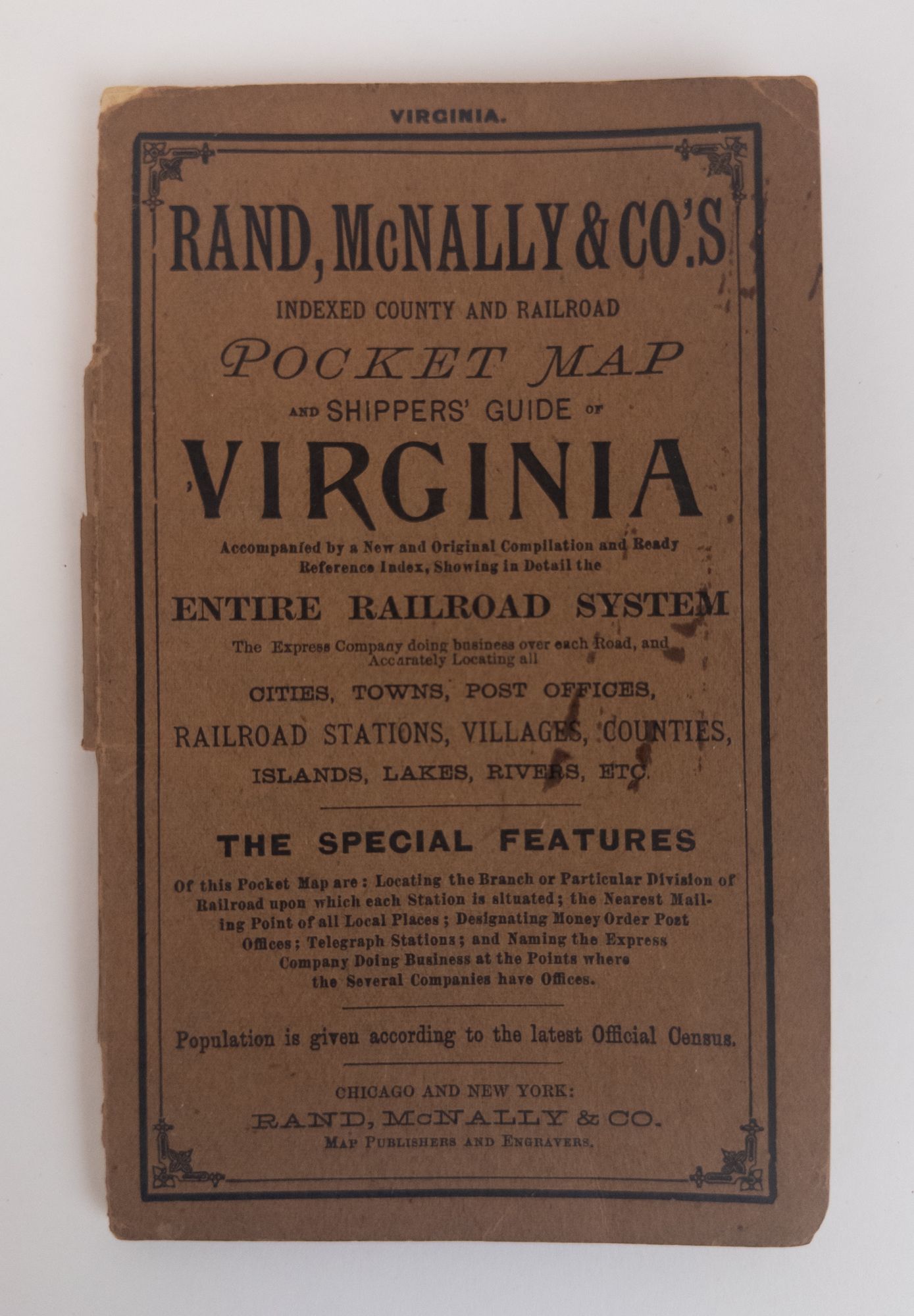 Rand, McNally & Co.'s Indexed County and Railroad Pocket Map and Shippers' Guide of Virginia Accompanied by a New and Original Compilation and Ready Reference Index, Showing in Detail the Entire Railroad System, The Express Company Doing Business over each Road, and Accurately Locating all Cities, Towns, Post Offices, Railroad Stations, Villages, Counties, Islands, Lakes, Rivers, Etc.