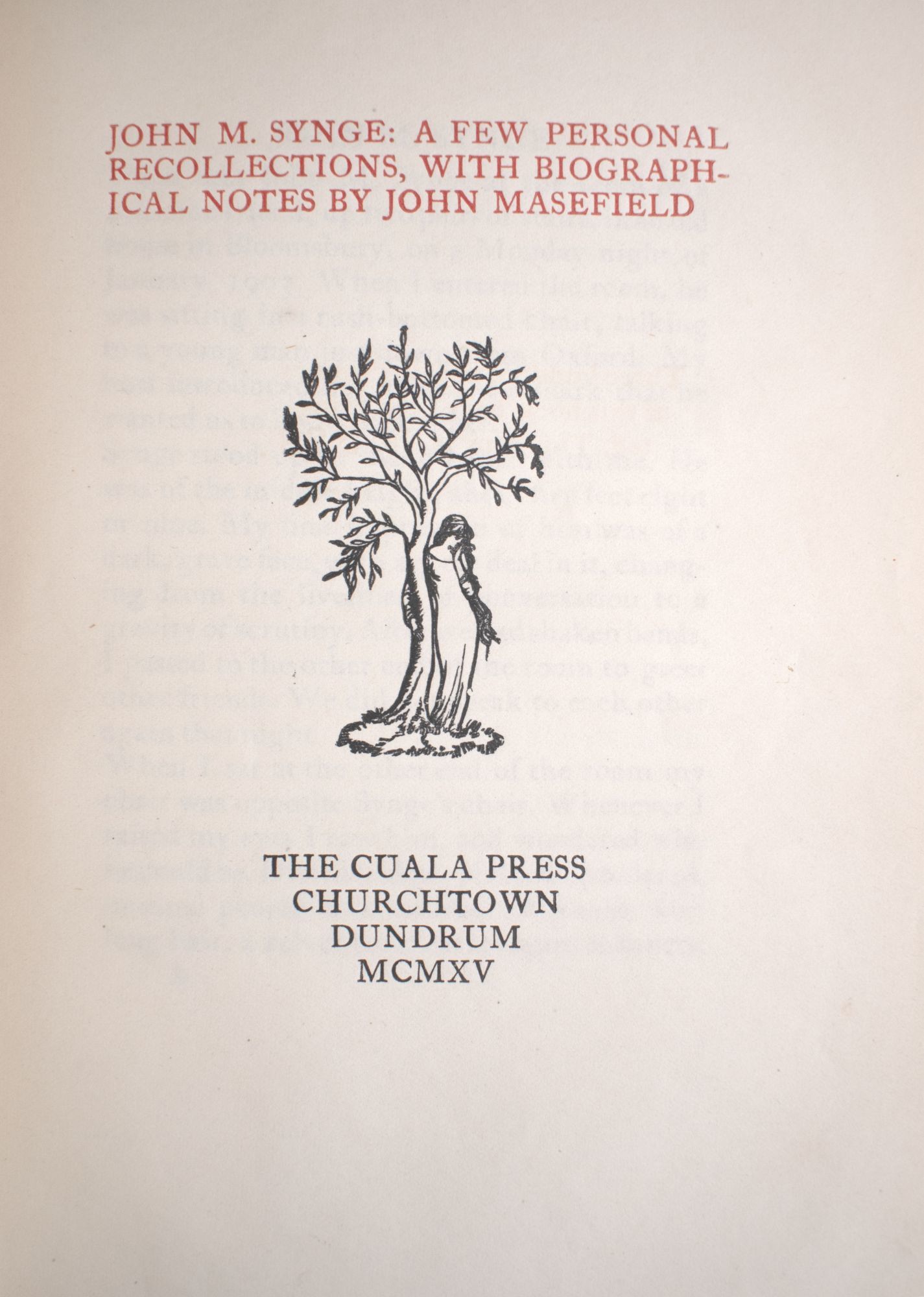 - Dun Emer pressmark to title page. Text printed in red and black. [iv], 34, [1] pp. 1 vols. 8vo