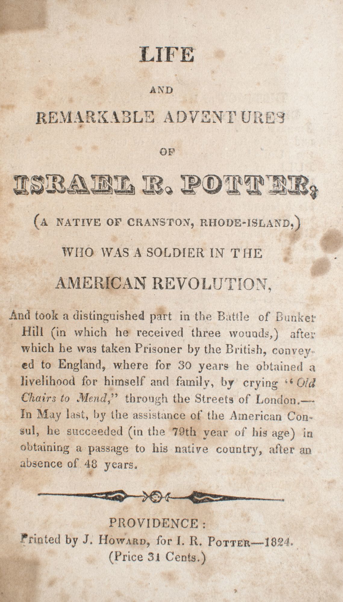 The Life and Remarkable Adventures of Israel Potter…Soldier in the American Revolution