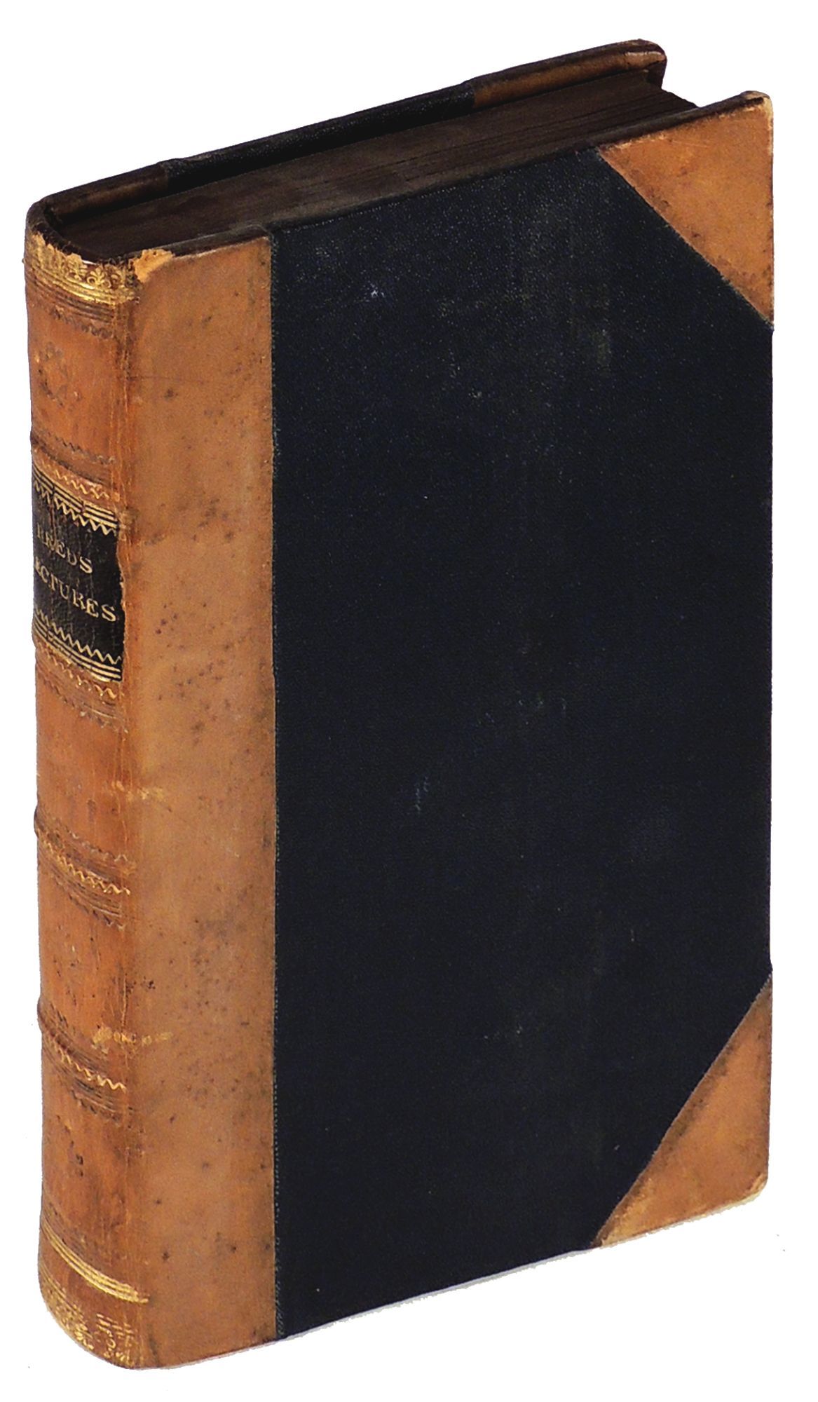 Bound in three quarter tan leather over navy blue pebbled cloth boards with black and gilt title label to spine. Raised bands, gilt rules, and blind stamped decorations to spine. Floral endpapers with speckled red edges. Minor rubbing and wear to boards, spine, and edges. Occasional spots of foxing to interior, but clean and bright overall. 279 pages. LIT083022.