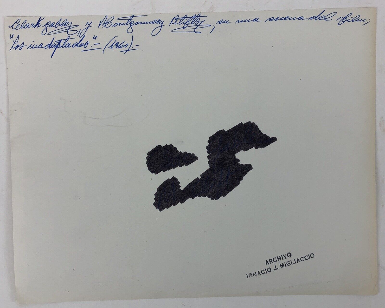 Group photo of Monroe, Wallach, and Gable on the set (tack holes to corners)