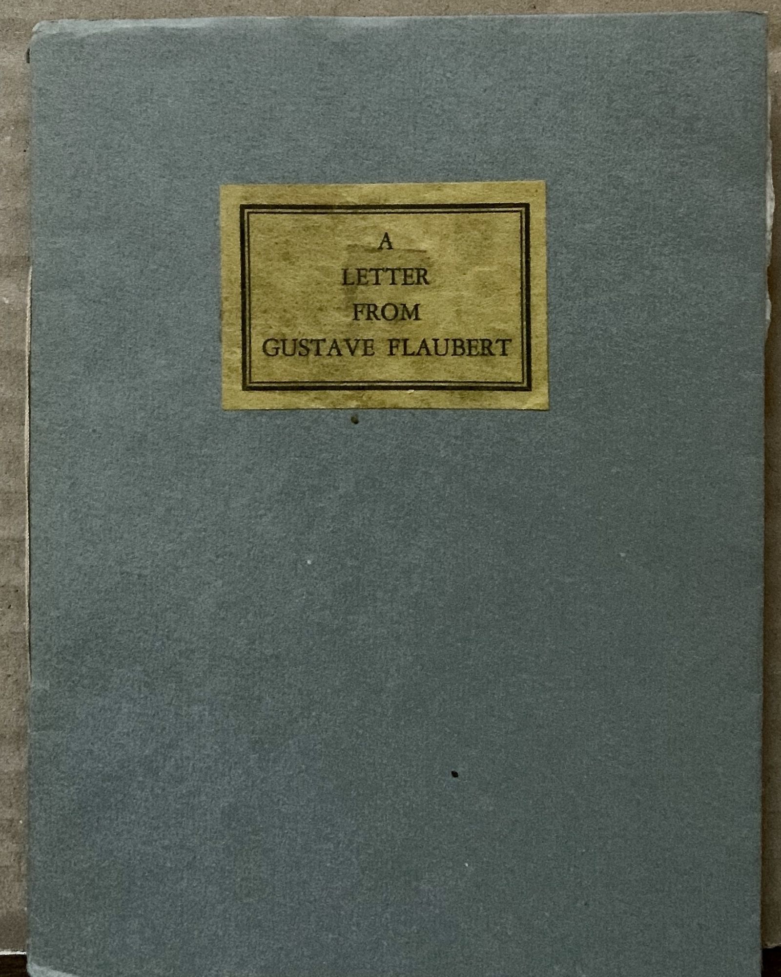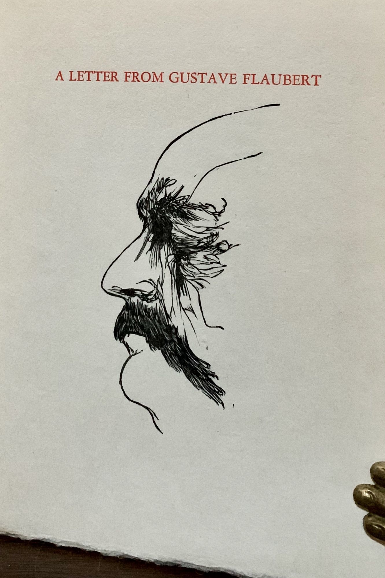 Northampton: Gehenna Press, 1960. First edition. Stiff Wraps. Orig. gray stiff wrappers with front cover paper label. Fine. Baskin, Leonard. 5 leaves. 15.5 x 11.5 cm. Limited edition, one of 300, a keepsake printed by Esther & Leonard Baskin & Richard Warren. The translation is by Francis Steegmuller. A letter from Gustave Flaubert to Maxime du Camp dated June 19, 1852. The wood engraving by Baskin printed from the block. OCLC does not list this English edition, only the French edition dated 1987.