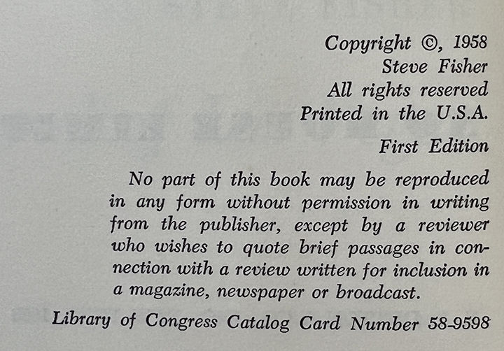 New York: E.P. Dutton & Co, 1958. First Edition. Hardcover. Very Good/Near Fine. Very Good in a Near Fine jacket, unclipped ($3.50), lightly toned and rubbed. Red paper on the boards, scuffed at the surface, lightly bumped at the corners. Square and firmly bound, foxed at the edges, toned at the endpapers. Fisher's novel about a three-day-long dice game with the casino itself at stake.