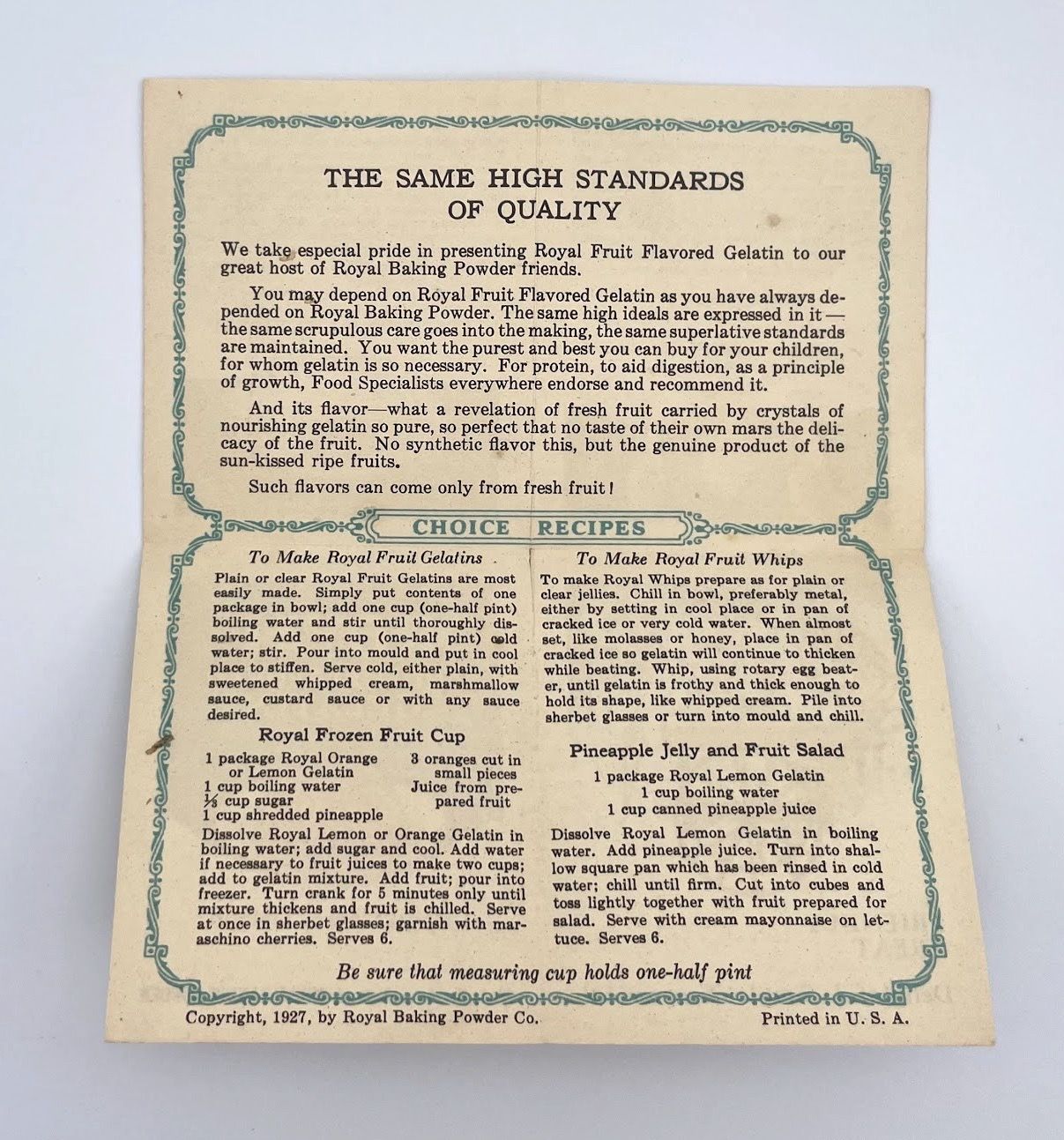 - New York, NY: Royal Baking Powder Company, 1927