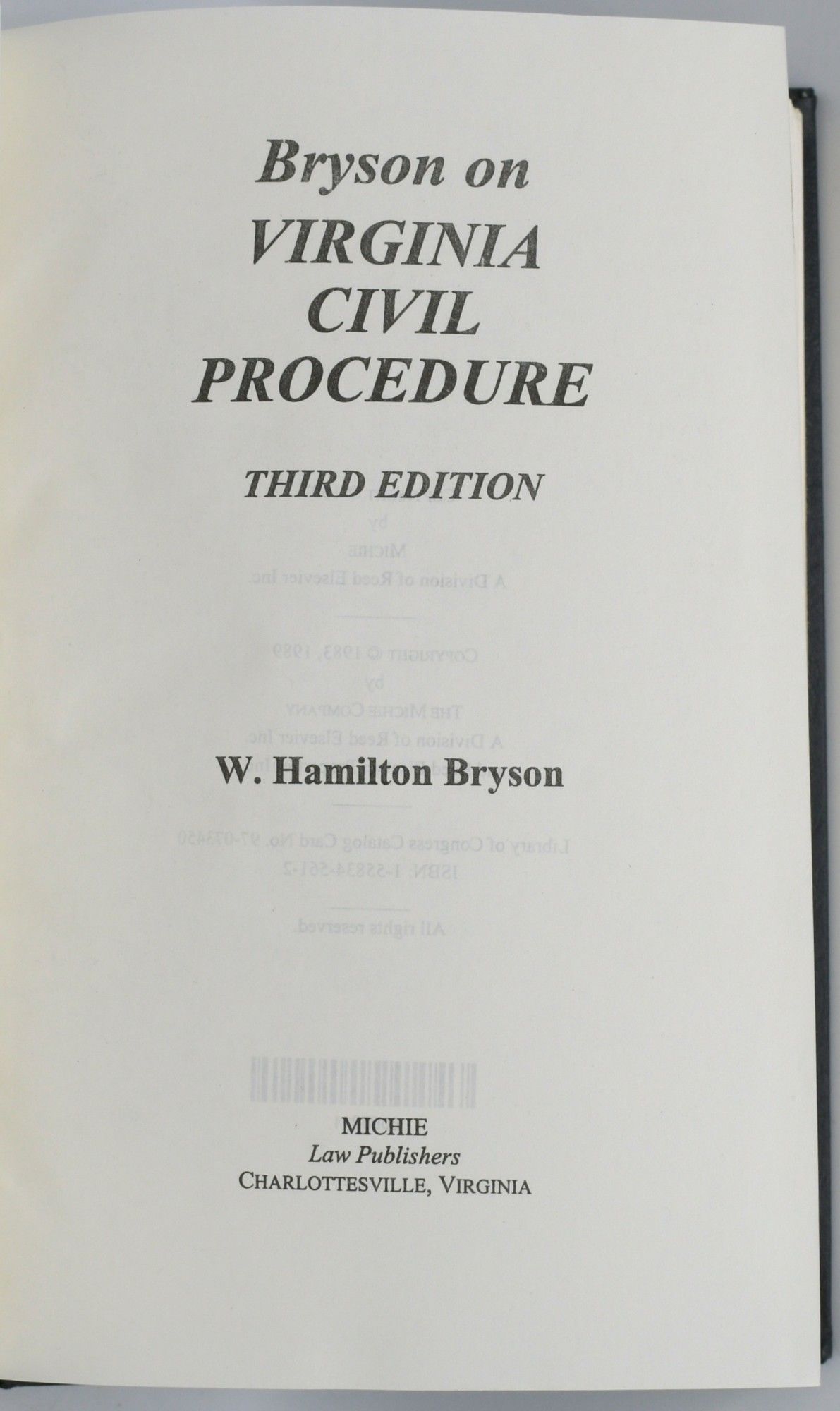 Charlottesville: Michie Law Publishers, 1997. Third Edition. Near Fine binding. Bound with the 2000 Supplement issued by LexisNexis. A clean tight copy bound in black wiih gilt lettering and mo marks of any kind. Near Fine binding.