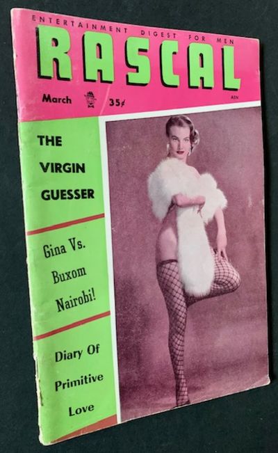 Chicago: Camerarts Publishing Co, 1957. Pictorial wrappers. Near Fine. Early, uncommon issue, the March 1957 2nd issue published. Clean and Near Fine in its Burlesque-like pictorial wrappers. Octavo, wonderful articles throughout, including "The Virgin Guesser", "Gina. Vs. Buxom Nairobi", "How to Avoid Matrimony!" and "Diary of Primitive Love