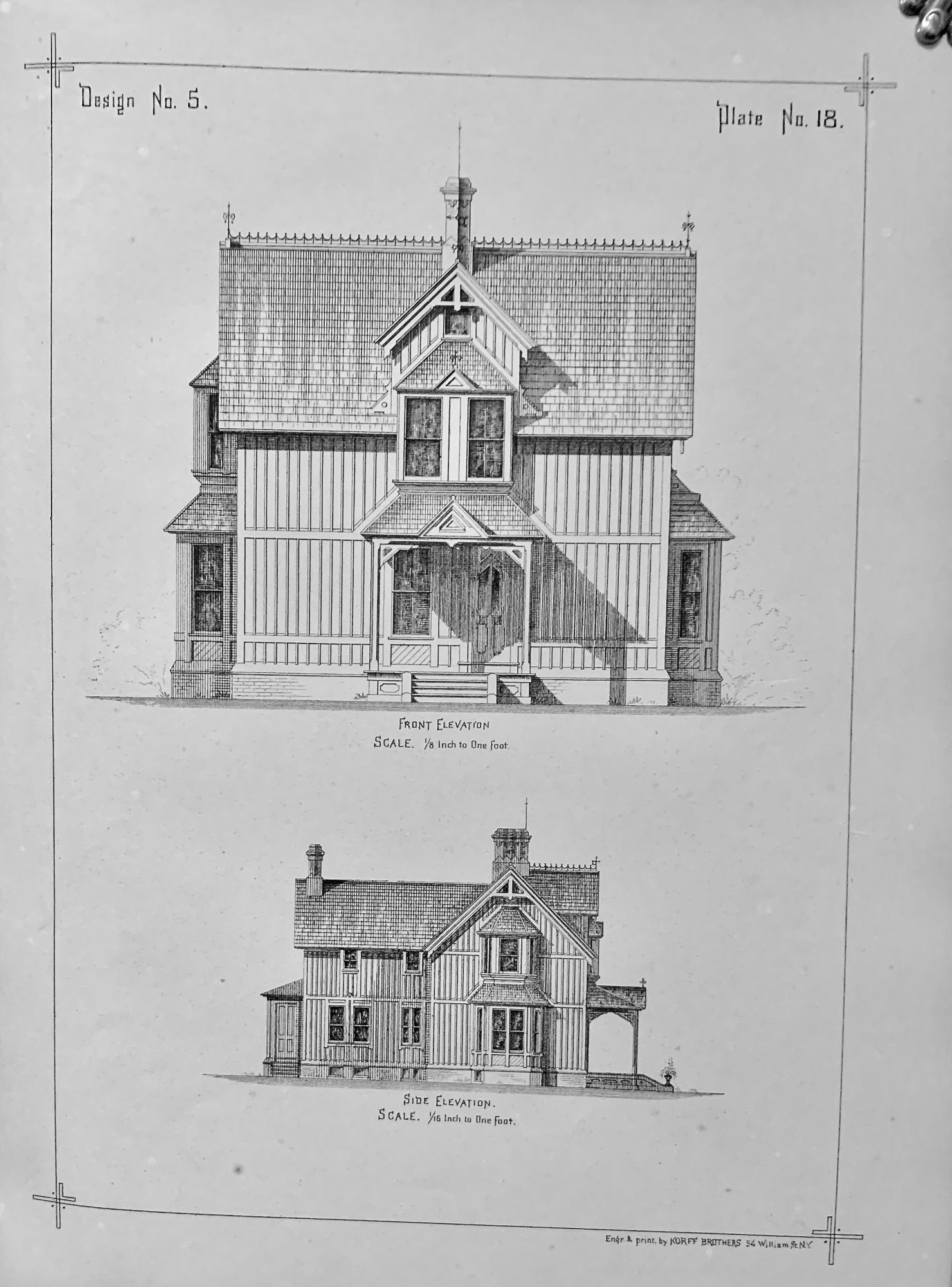New York: Geo. E. Woodward, 1869. First edition. Hardcover. Orig. brown publisher's cloth. Very good. 26 pages in text, 100 lithographic plates, advertisements at end of text with twelve full-color lithographic samples of floor tiles. This volume contains full blown stick style for cottages, houses, an ice house, boat and bath house, schoolhouse,stable, French villa, church, miscellaneous details [french roofs, dormer windows, bay windows and tower roofs, etc]. HITCHCOCK 1437. Backstrip chipped at extremities, lower corners rubbed, Binding tight, plates clean and fresh.