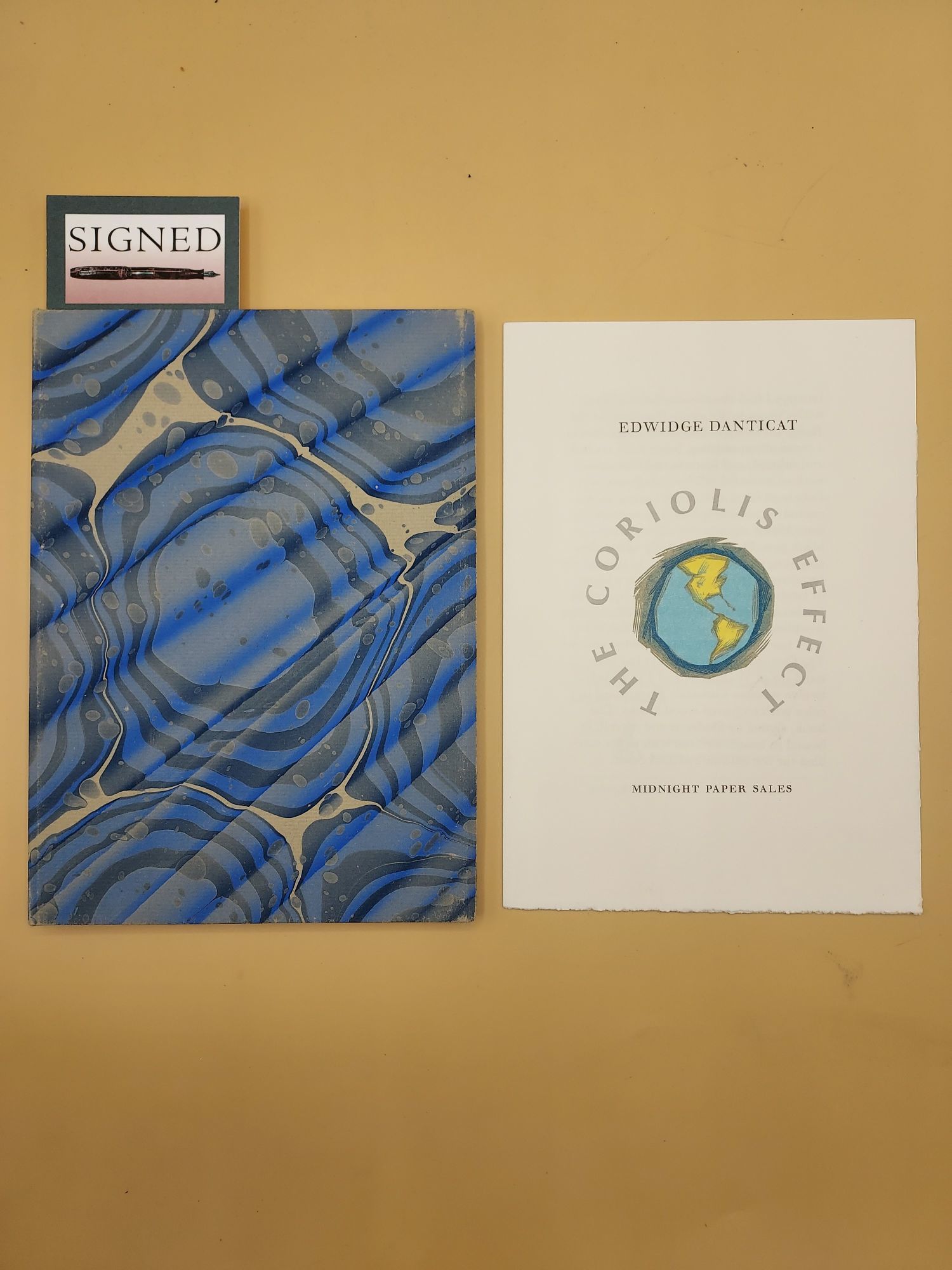 Midnight Paper Sales, 2002. Limited Edition. Hardcover. Very good +. SIGNED. Slim duodecimo [19 cm] Blue and gray marbled paper over boards, with a paper title label on the spine. Yapp edges. Top edge trimmed; other edges deckled. With just a little bit of wear to the extremities. Publisher's prospectus tucked in. Edwidge Danticat was born in Haiti and moved to the United States when she was twelve. She is the author of several books, including Breath, Eyes, Memory, an Oprah Book Club selection, Krik? Krak!, a National Book Award finalist, The Farming of Bones, an American Book Award winner, the novel-in-stories, The Dew Breaker, and this, MPS Little Book number 4, The Coriolis Effect.