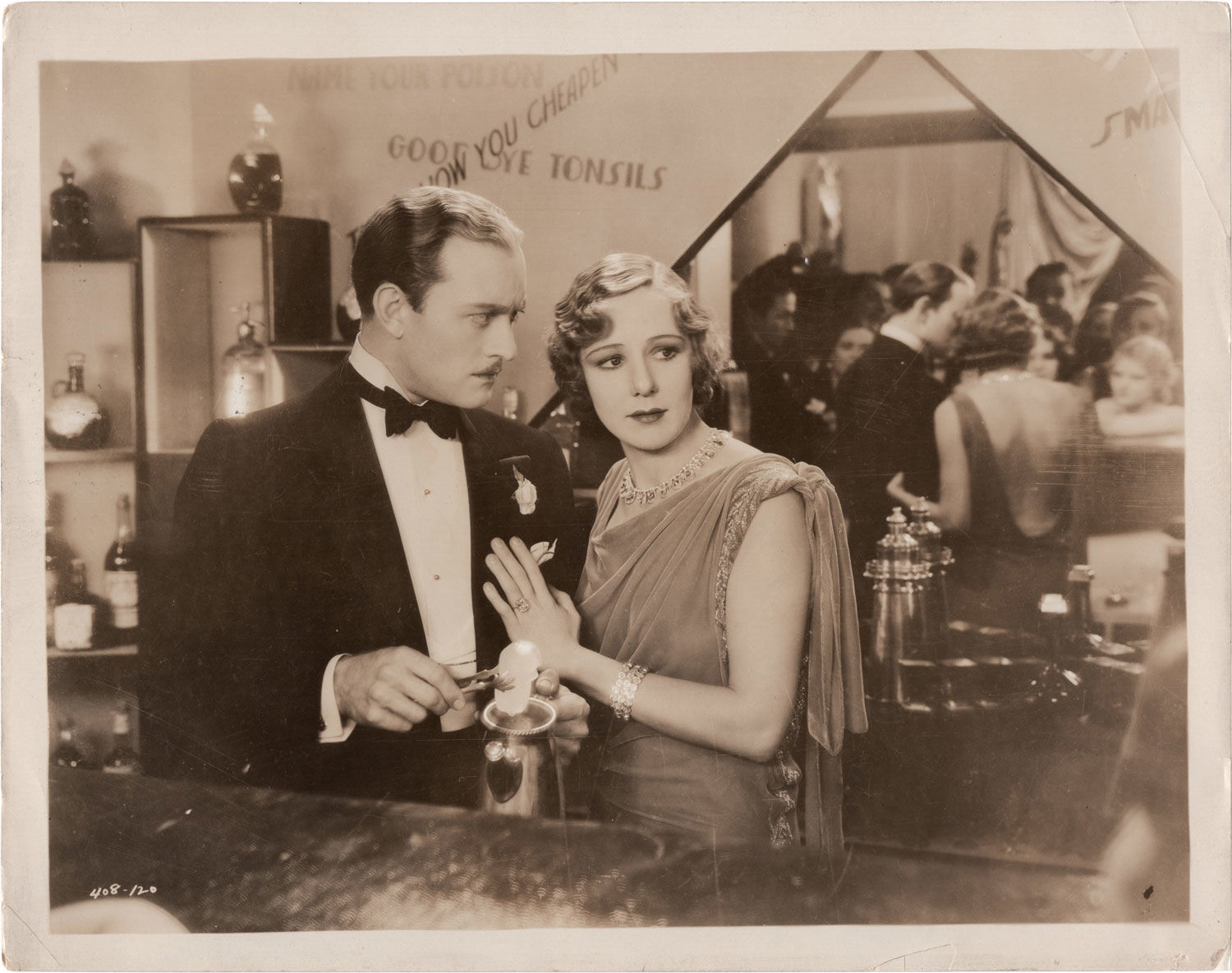 Beverly Hills, CA: Metro-Goldwyn-Mayer [MGM], 1929. Vintage reference photograph of Conrad Nagel and Kay Johnson from the 1929 pre-Code film, showing actors Conrad Nagel and Kay Johnson. Mimeo snipe on the verso.